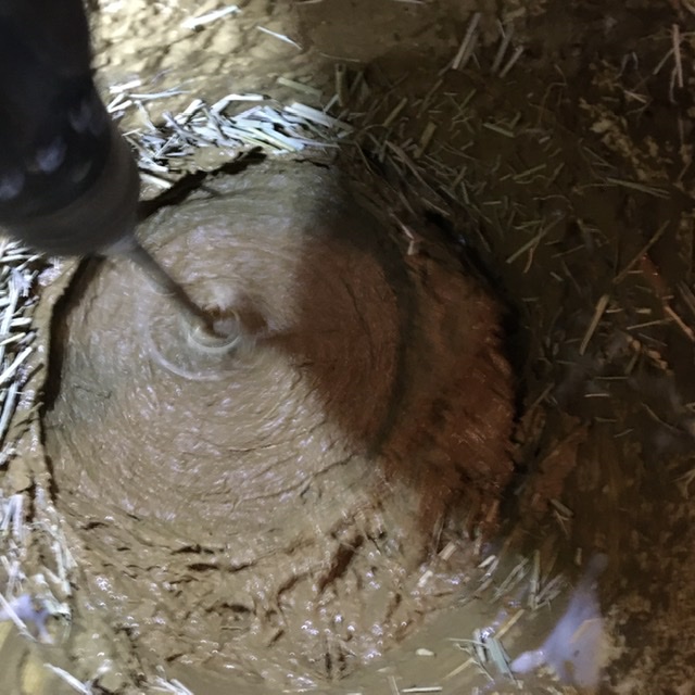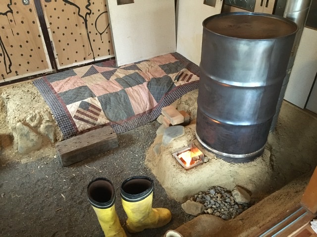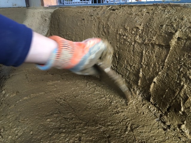 to a layer of clay and lime based plaster the other day. We used it to cover the perlite/clay layer around the perimeter of the room and also as an additional layer on the outside of the feed tube.