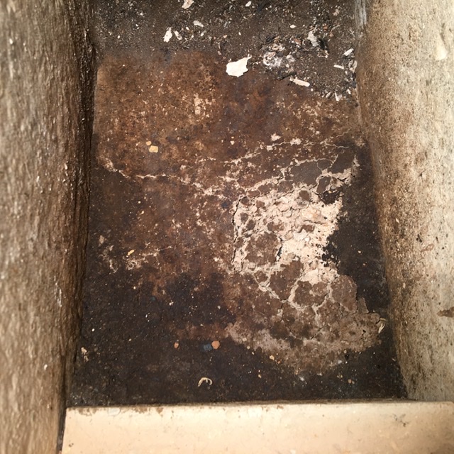 You have gravel, mud and ceramic board under that bottom brick.