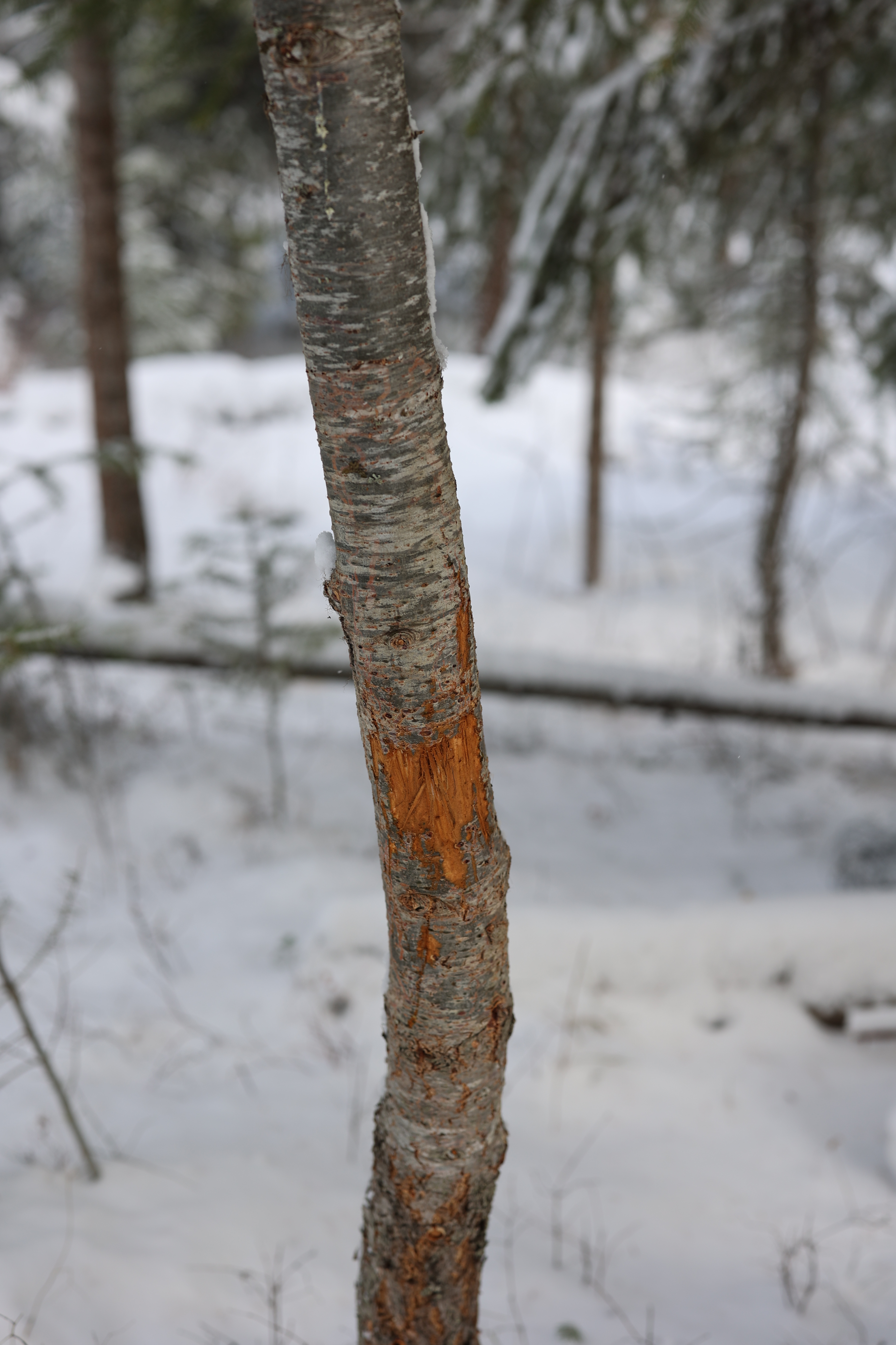 On my plot i found a couple of trees with the bark scraped off. Not sure if this was deer or elk, but this probably happened when one of the males was scraping the velvet from their antlers. Some trees will recover from the bark injury and some will not.