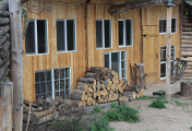 I would have to say from the first log fell to when the umbrella is on that over 3,500 hours were/will be spent building 0.7. Many lessons were learned and I hope that 0.8 will take under 1,500 hours. And 0.8 is going to be 2x as big. I can imagine we can get it to about 1,000 in time. Log falling,skidding and pealing are a good 50% of this time.