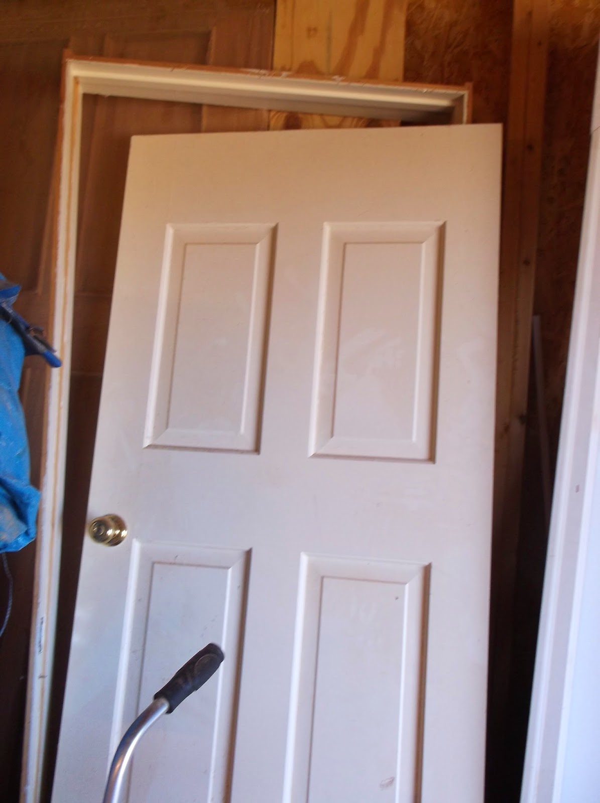 O.k. that helps, I will try to take what R. Scott wrote a few steps further. If the door is indeed some form of "particulate materials," it is best left to the interior of a structure. How you tell will also assess your skill sets. Take a "block plane," and plane some wood off the ends, sides, and a little off the face of a rail or panel. If solid wood is revealed great, if not, the door will only last a few seasons at best in most cases. Especially with a modern paint applied to them.