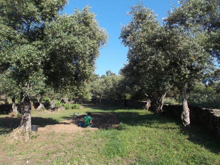 This was the experimental patch. We tried to choose a nice level place, not too close to the olive trees in case the veggies didn't mix with them, but making use of their shade. We have terrific problems on the rest of our land as there is no shade and no soil worth speaking of and it's exceptionally difficult to keep things alive, let alone growing, during Portugal's crazy hot, dry summers.