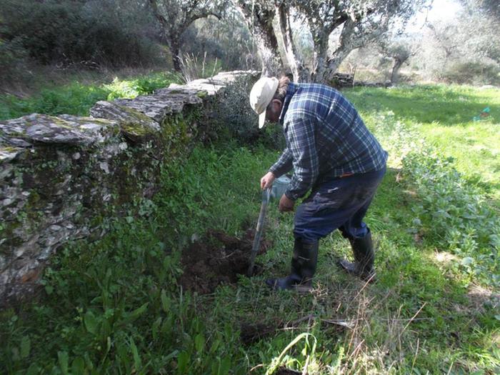 When we first bought our little farm, I was disappointed that there were no olive trees on it. Word spread and we were soon offered a three acre patch of land running along a seasonal stream, half a mile out of the village. There were fifty olive trees, a load of wild pine, some amazing wildflowers and rock formations, and a quarter acre walled section known as hortinha, which means 'vegetable garden'. I fell in love with the place, and it soon became my very own in lieu of a wedding present.