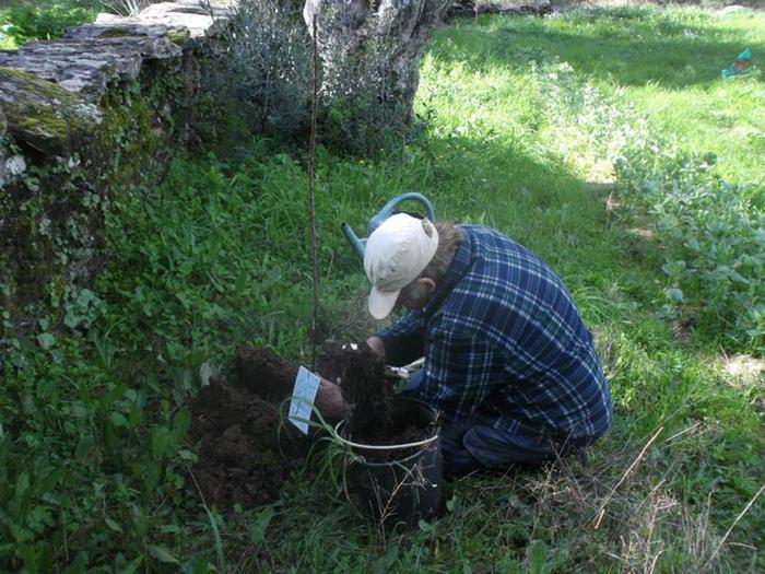 We already planted an almond tree a week or two before. See how much moss is on this north-facing side of the wall.