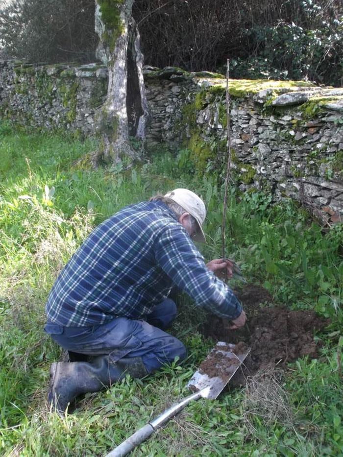 Generally when we plant trees at least half of them die due to the poor, thin soil, excessive heat and sun, and poor water supply. We don't like to overwater them as we want to encourage them to send roots as deep and far reaching as possible to find their own water, but it seems that on most of our land it's just not possible for them to survive. It will be interesting to see how they cope here. Everything looks so lush and green at the moment it's difficult to imagine how dry and burned up everything gets in August, and we'd really like to restrict waterings to no more than once a week, even for young trees. I think we've planted enough trees for this year - if they survive we'll put more in either in the autumn or next year. We still have the veggie garden to plant though. More soon!