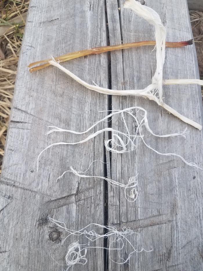 After planting around the Tipi I got to some bow stuff. I felt like the next step was to process some of the sinew into threads. So I pounded and split and sorted. I took a picture of the progression from whole sinew to done threads. I think I'm only going to do one piece a day. Doing one took about an hour, I hope I get faster.