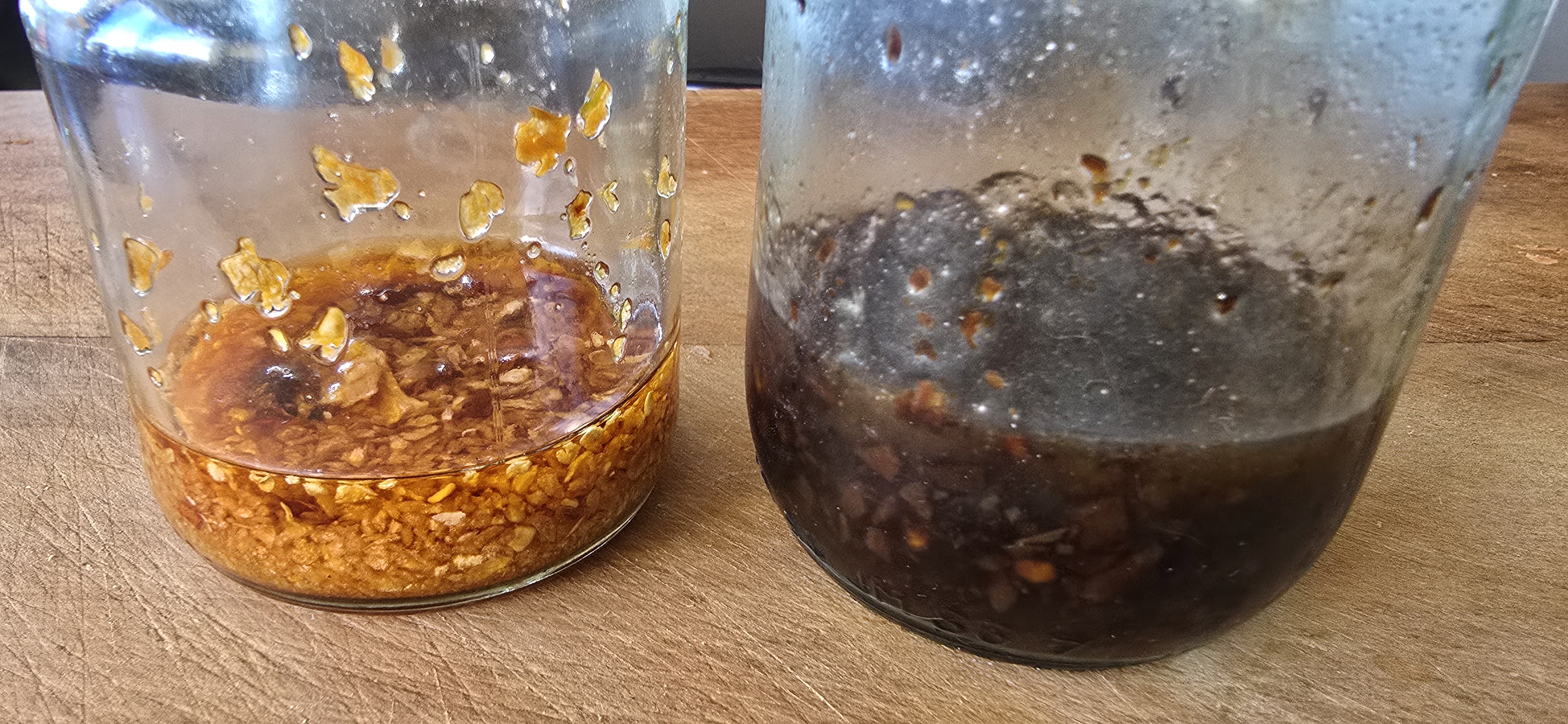 Once the garlic is nicely golden brown, cool and transfer to a jar.