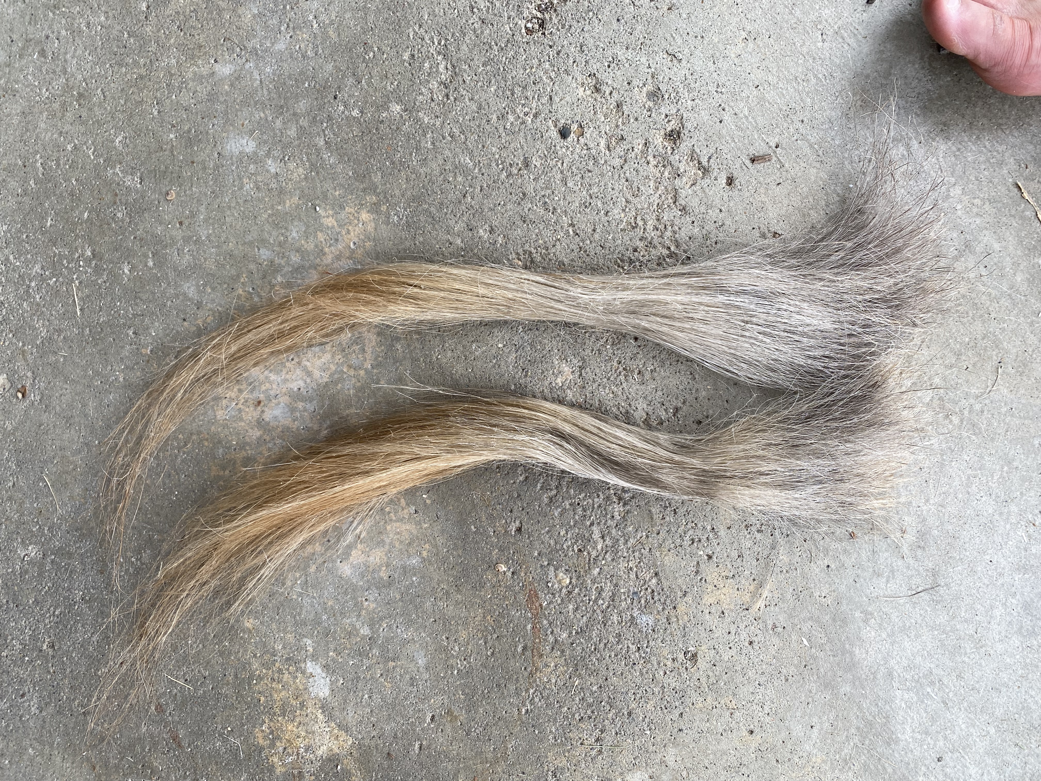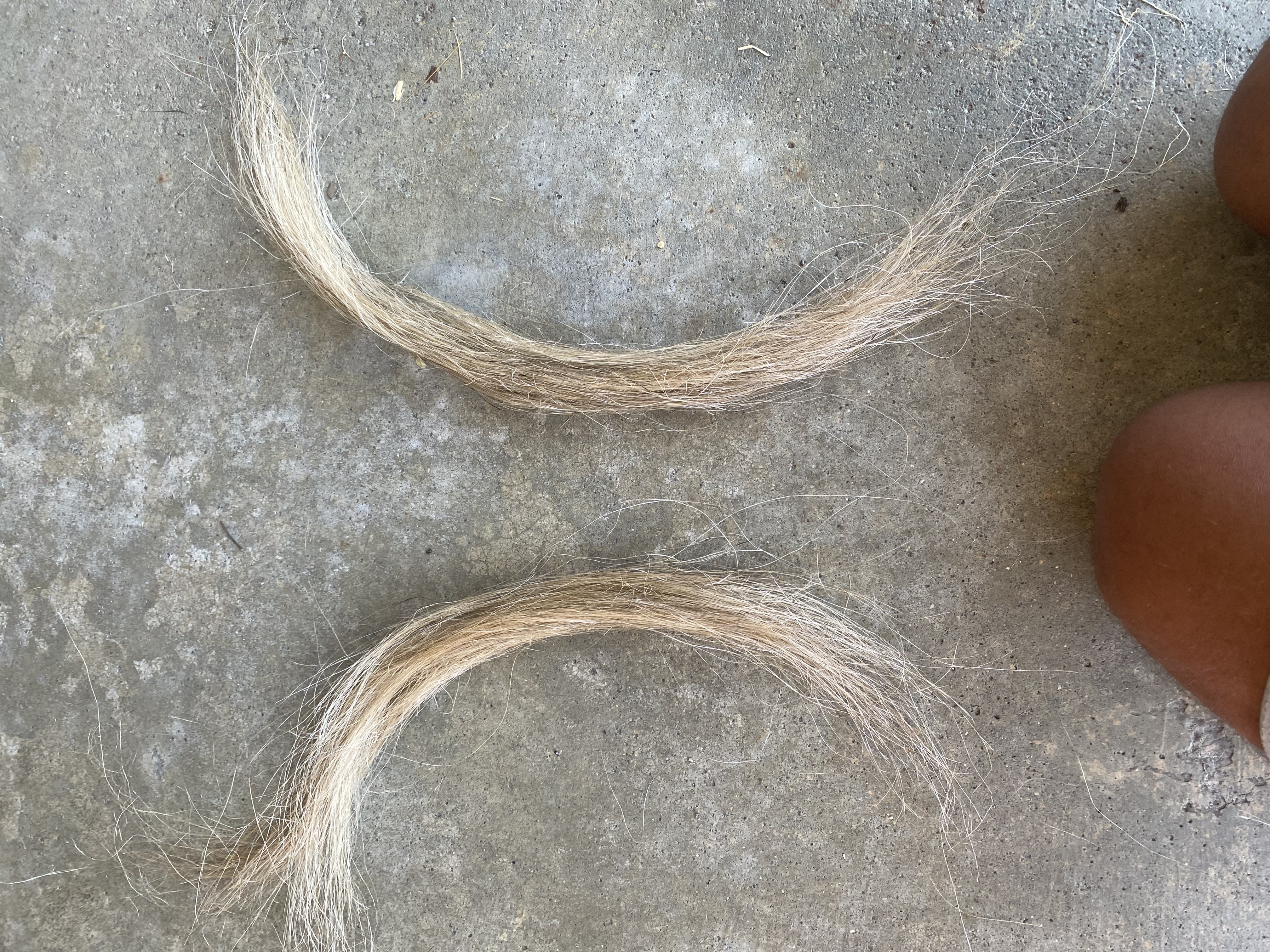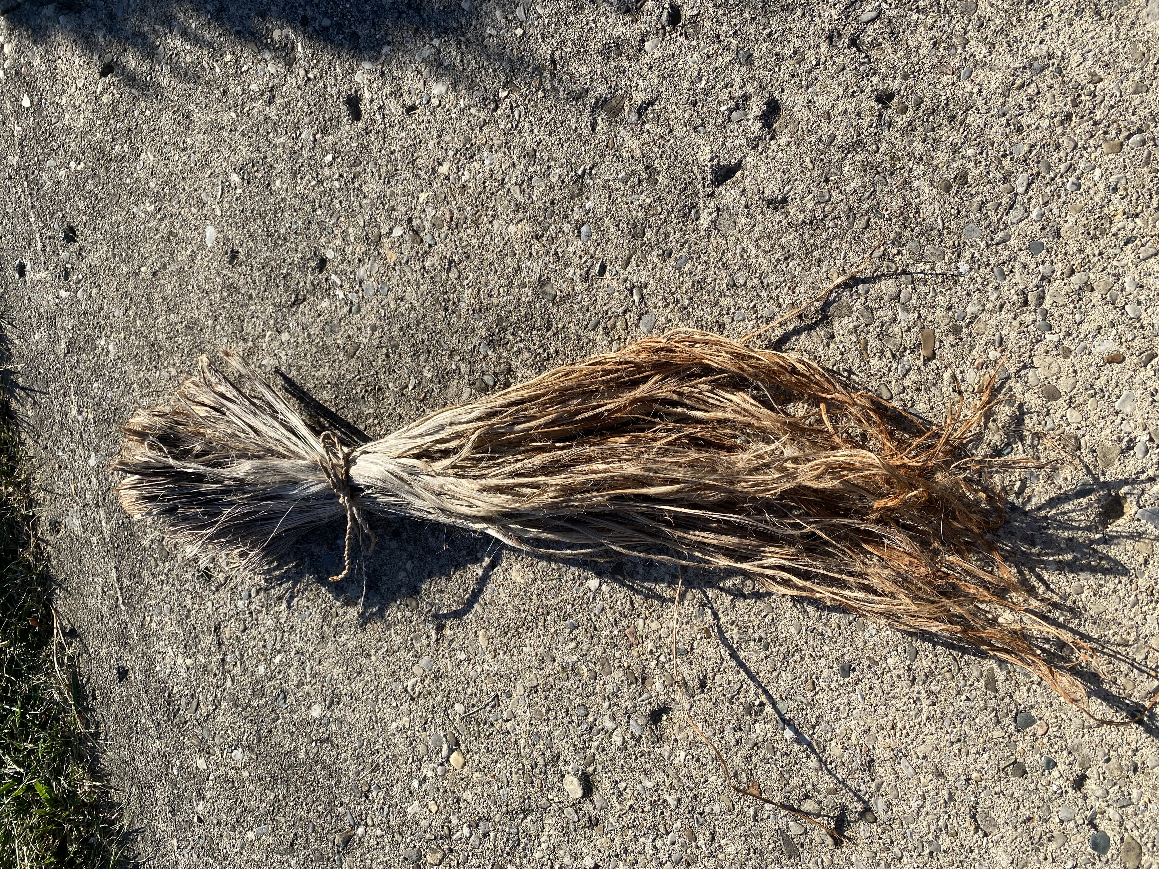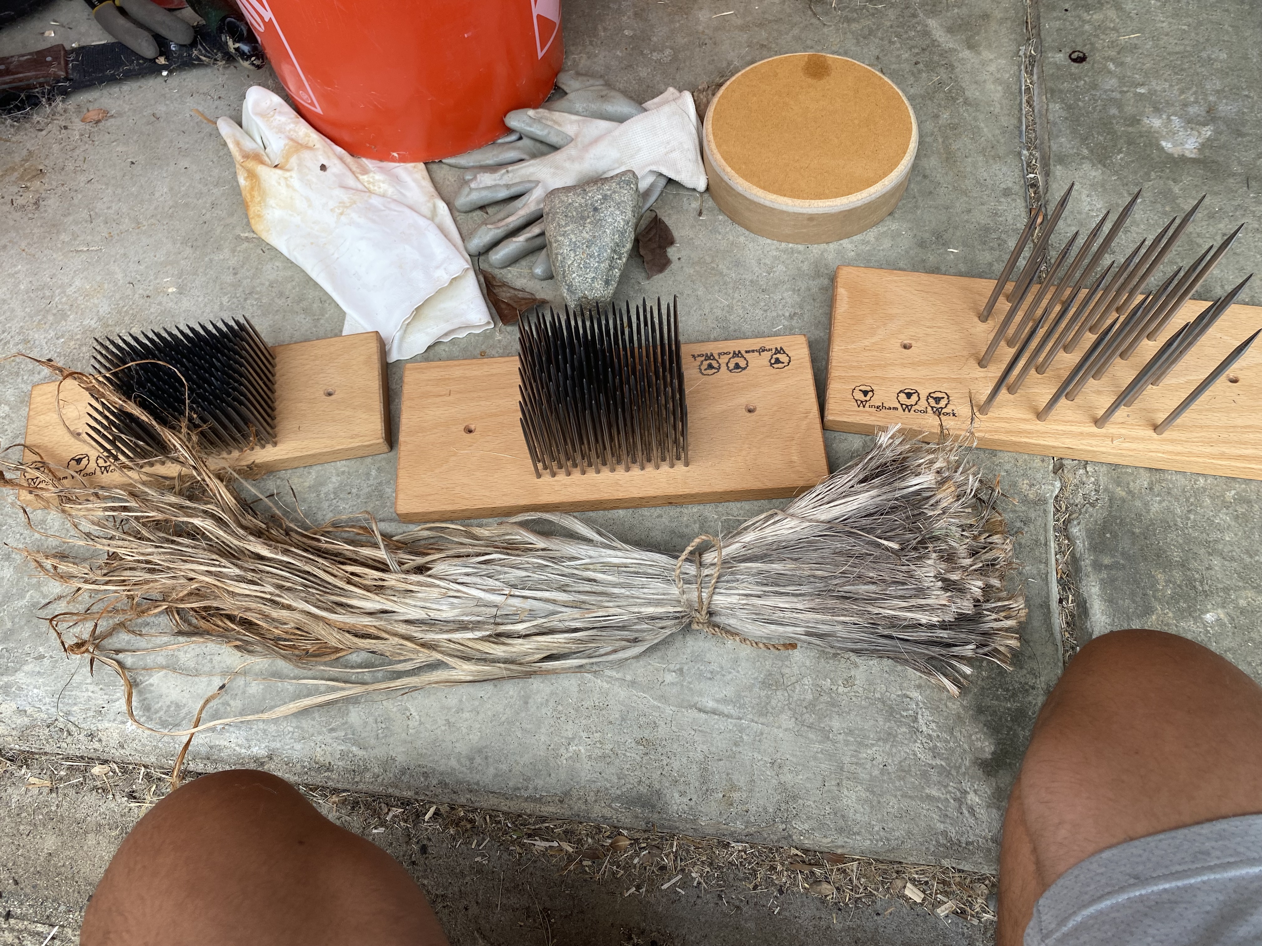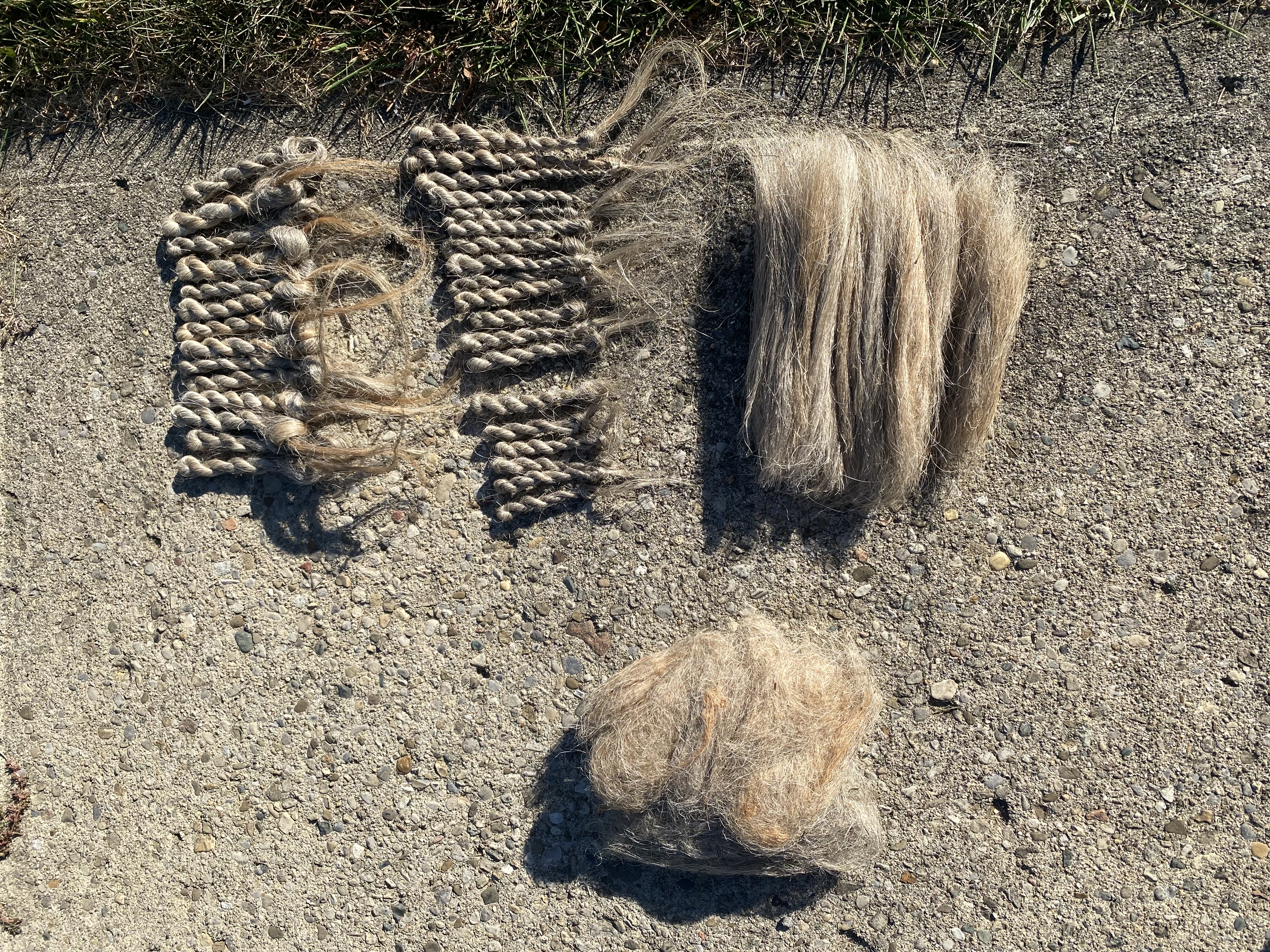 Hackled yucca line fiber. Notice the darker color at the base of the fiber versus the leaf tip.