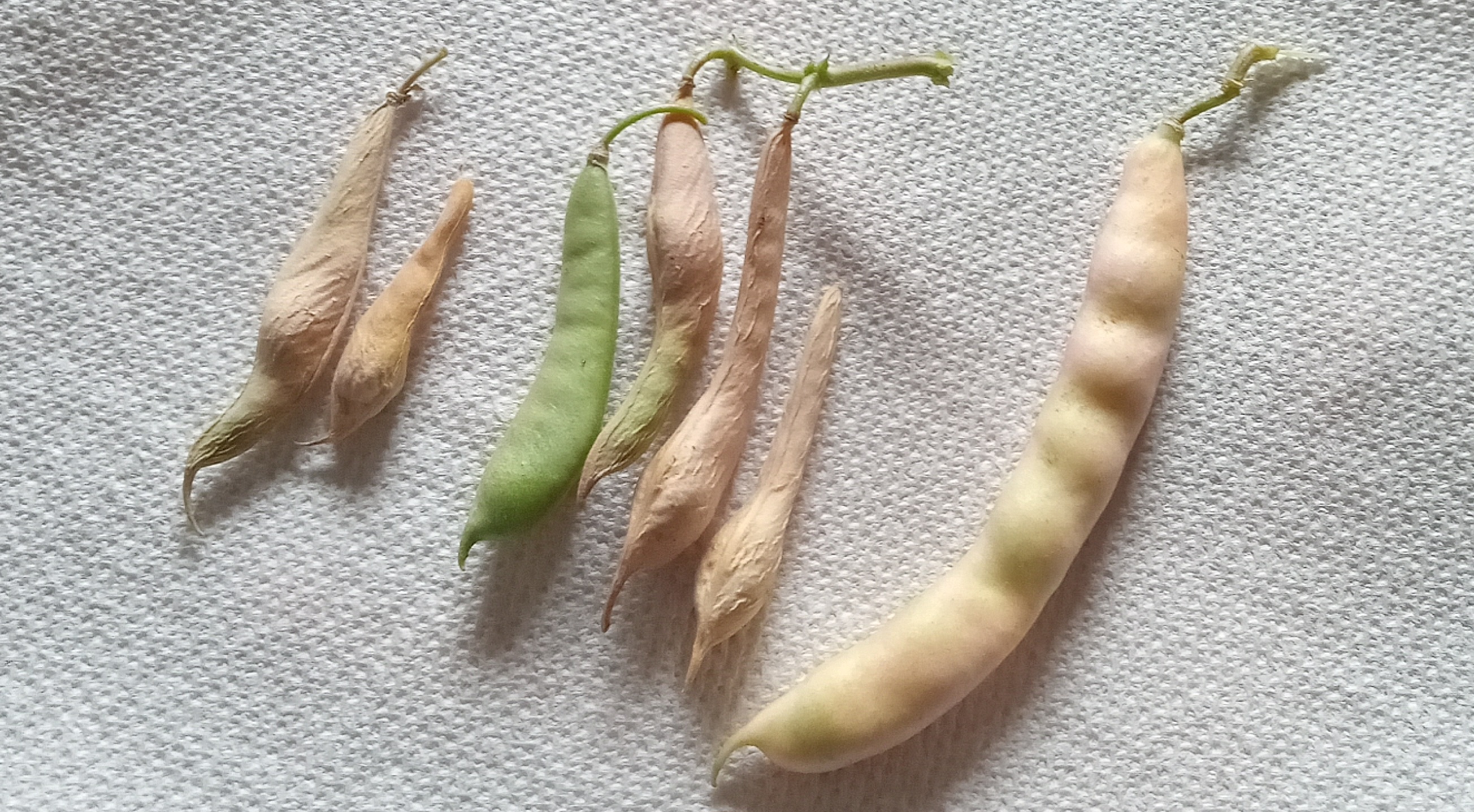 I have been planting emerite pole beans for quite a few years now. They are a french filet bean variety. Normally they do very well for me. The past couple years (new garden spot) they have been more sparse than normal as far as leaves and vigor of growing. And a majority of the beans are curling into a J shape, and often have a fat bottom and skinny top. In years past, curled beans were rare. If it matters, they are all from the same batch of seeds, and their germination has been less than normal.