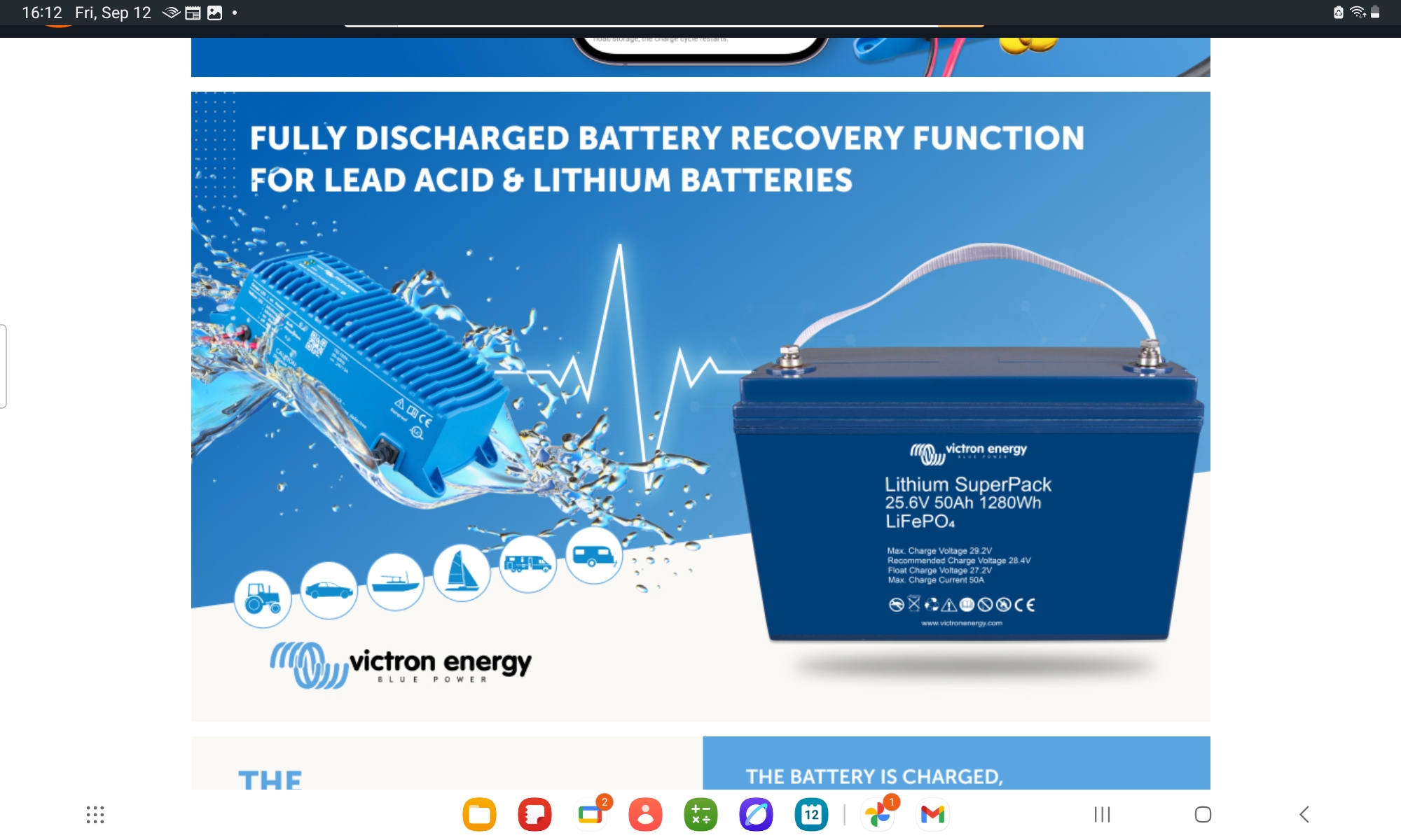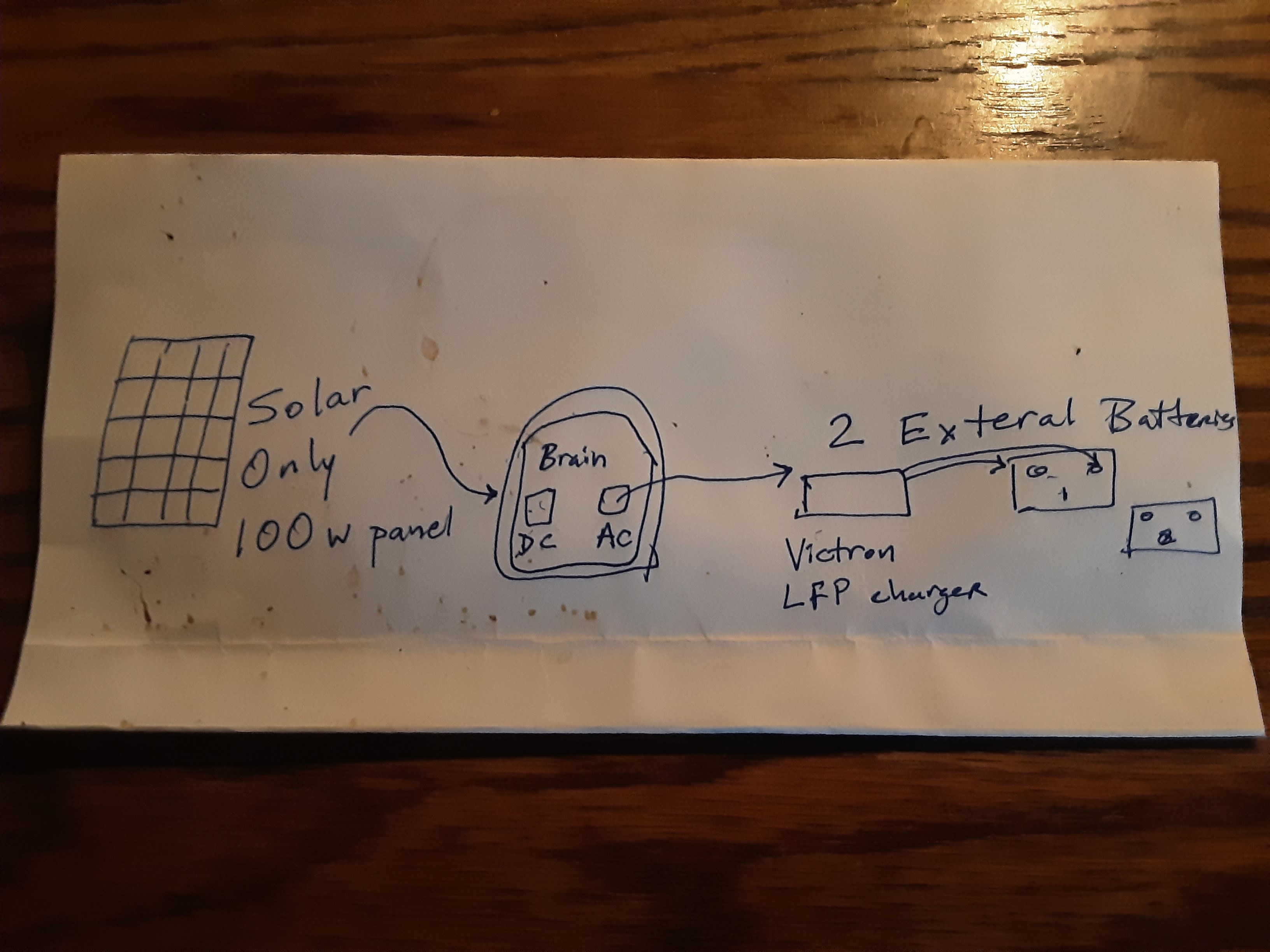 you would need to pull up the specs on the secondary battery not the all in one unit. It will tell you the charge voltage and you program your victron for that voltage.Rico Loma wrote:David , I wanted to send this again, please refer to specs on my all in one unit. Internal battery is very small. My only question at present is how best to chargethe battery shown here, it is 100Ah 12v battery, LFP chemistry. Would you advise using AC power for a smart charger designed for LFP battery? If not, 0lease explain.