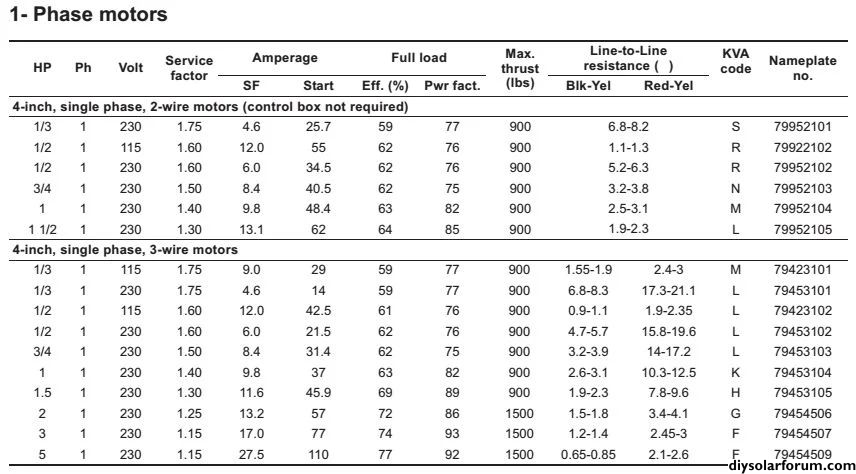 We're running a Luxpower 6000 all in one Charge/Inverter that puts out split phase 220V. Our well pump is 3/4HP for a 300 foot well. I ran it yesterday and was drawing about 1,600 watts from the system. On sunny days that works out just fine with our 9 x 380 watt panels. There's enough juice left over to charge the batteries and keep the lights on in the house.