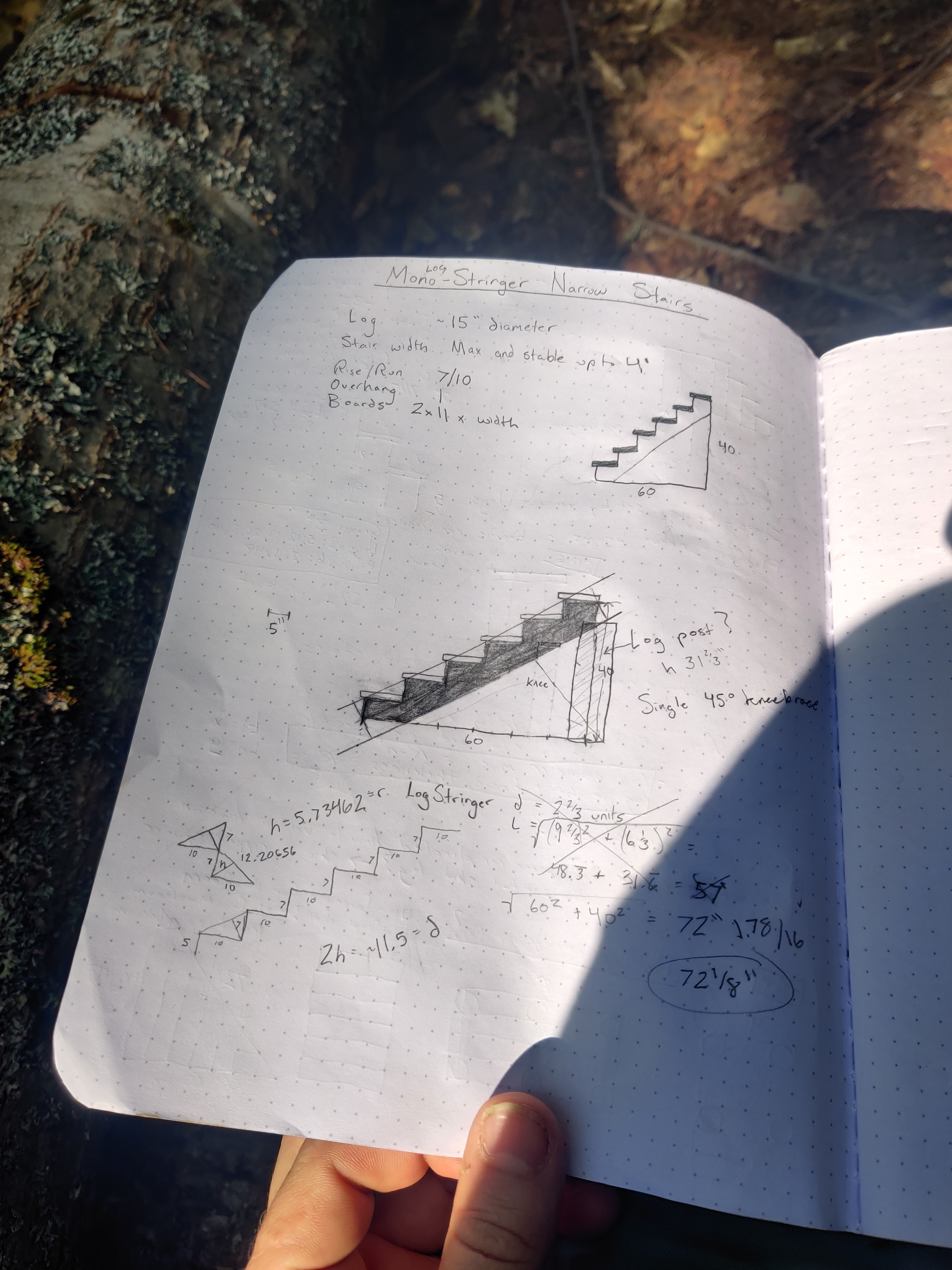My first ever project for the homestead harvesting the major materials from the woods around me. I used about $60 worth of very beefy and long GRK screws to hold it all together, much needed for the design and highly resistant to corrosion from weather and green wood. Ace Ventura earthquake tested very solid! Main tools used: chainsaw to fell, buck and freehand mill the steps and stringer; hatchet to chip and strip bark; impact screw and drill drivers. We will see how many years they last. Many years from now, as I lay dying in my bed, I will look back on this day and think, "those where some pretty dang sloppy stairs," and I'm sure my skill will have grown immeasurably. But these are my first stairs... there are many like them, but they are mine, and they will always be special in my heart.
