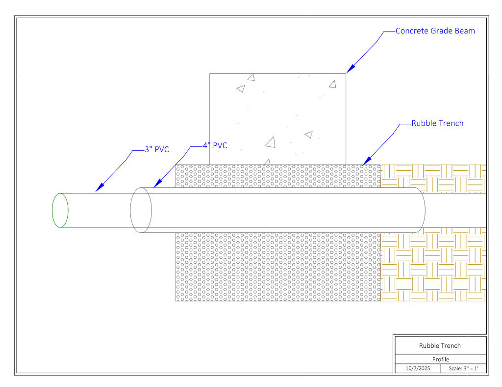 Note: Strictly speaking this is a modern addition to rubble trench detailing. But it is simple insurance to make sure that your structure lasts for centuries.