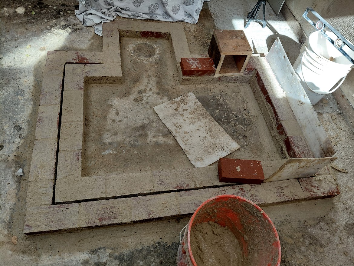 Today, I mudded down the first layer of bricks for the inner bell of the new Studio Dragon.