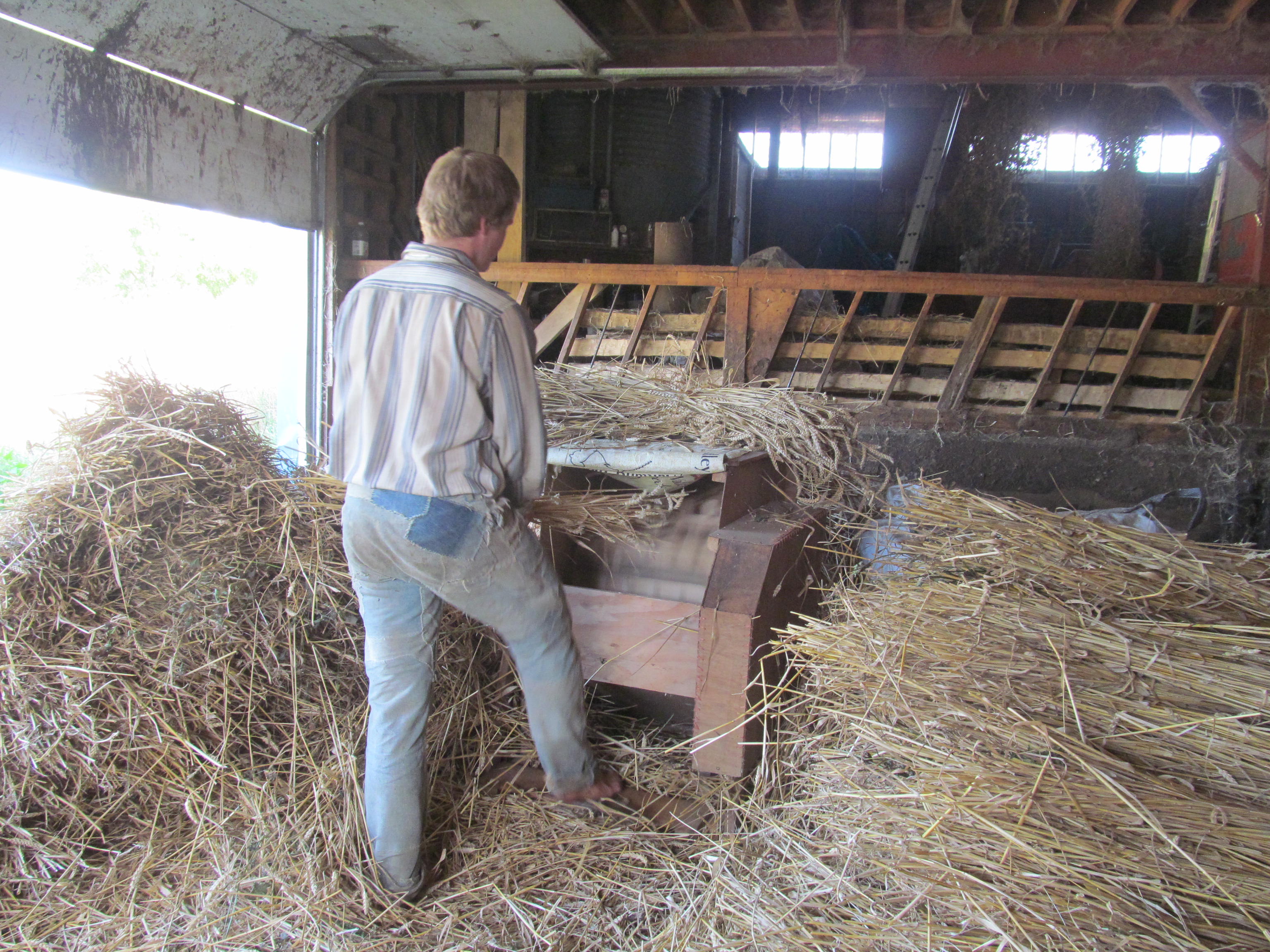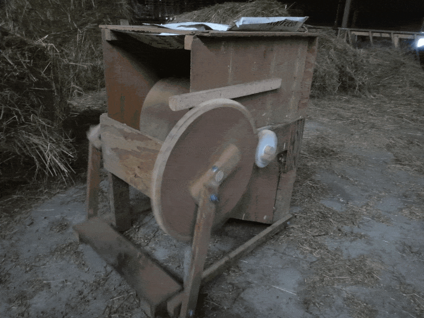 That's it. After threshing, you need some way to separate the crop from all the chaff and bits of stem that got pulled through. A fanning mill is a great human-powered option that's well-matched in terms of scale. Wind winnowing also works.
