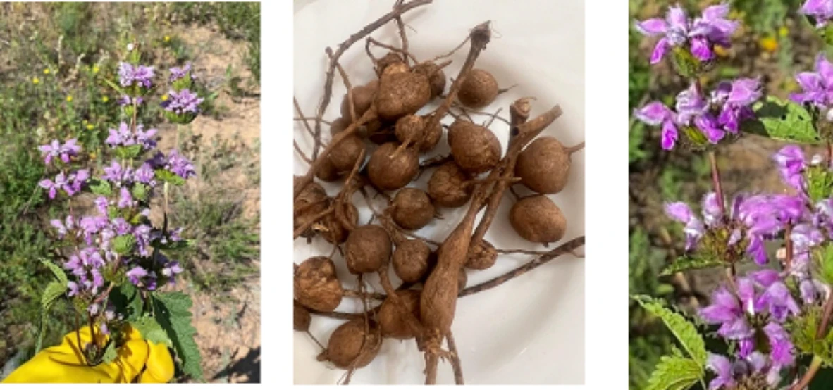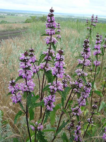 Phlomoides tuberosa, Phlomis tuberosa common names Sage-leaf Mullein or Tuberous Jerusalem Sage known as bodmon sok by the Kalmyk people of central Asia who eat it and use the plant medicinally.