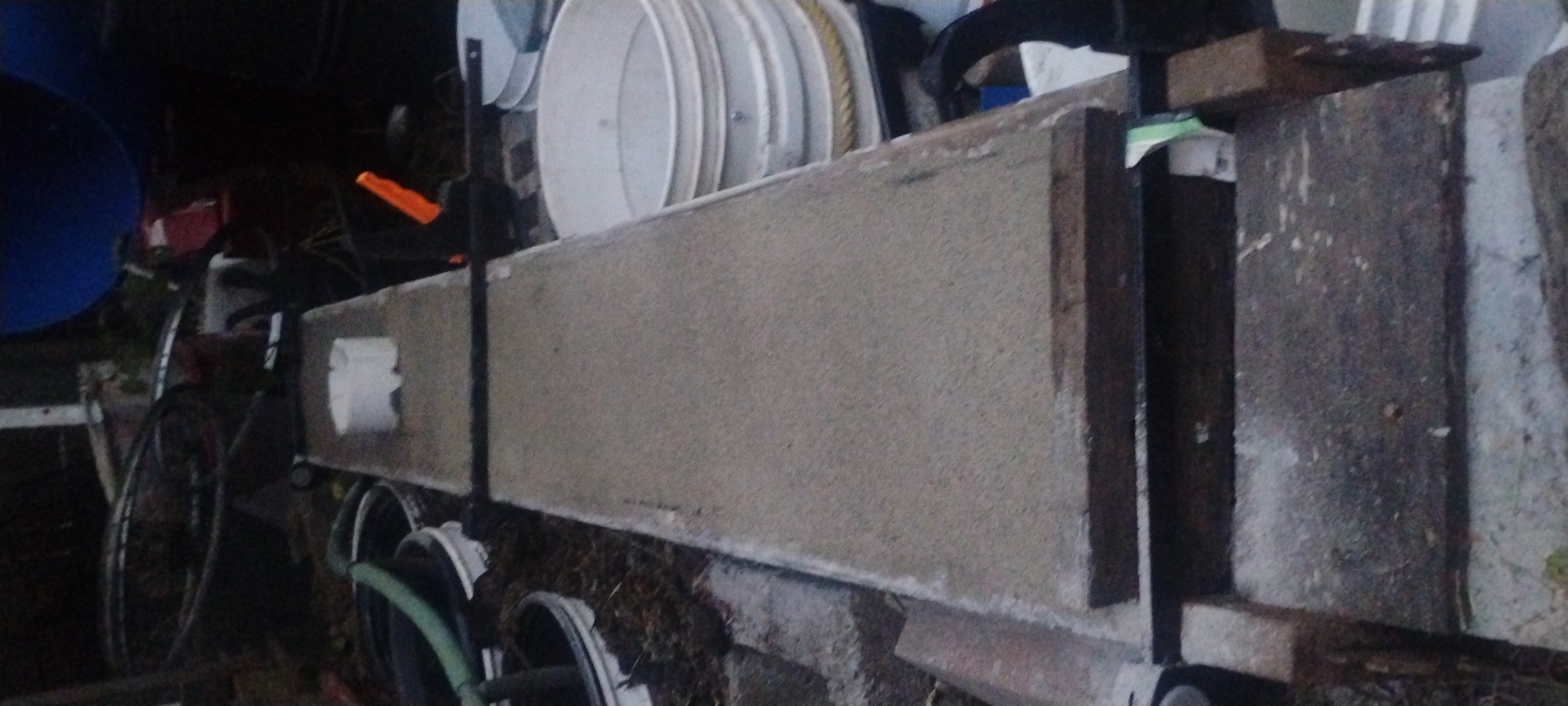 I am using two old side rails from a bedframe for this job, but a pair of 2x8s should match the height of a cinder block pretty well.