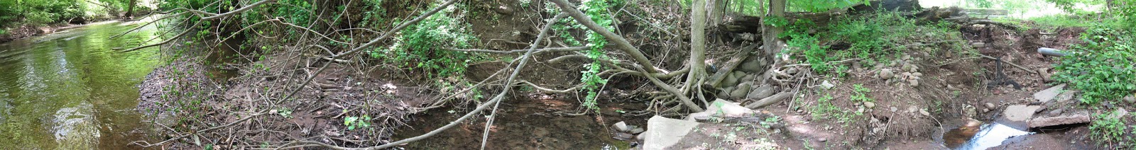 This is less than 20 yards behind my current garden. Water comes down a gravel tractor path, past my garden and down into the river bed, taking tons of soil and rocks along with it. It has also invited Japanese Knotweed to move in. Sadly, the property owner doesn't see this as much of a priority. For the 5 years that we've lived here, he's been saying that he is going to "fix" the bank, and every year a few more feet of the bank goes into the river.