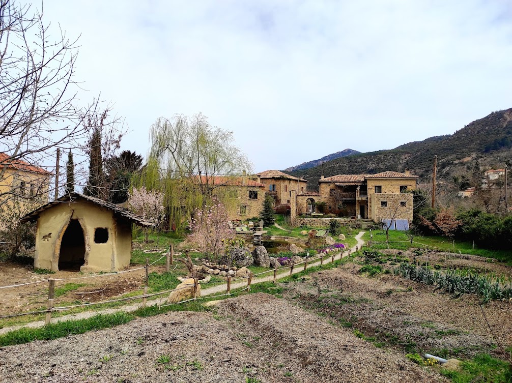 The property sits in the last block of the village, beside the gorge of the Krios River, surrounded by like-minded residents in a cooperative micro-community. Beyond this block, the wider village hosts a growing international intentional community practicing ecological and regenerative lifestyles.