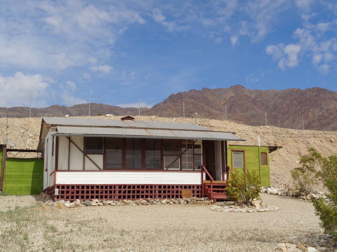 The cabin is 432 sq. ft. and sits on its own unfenced property in a rural desert setting in the morning shadow of the Chocolate Mountains, 4 miles east of the Salton Sea, 5 miles from Bombay Beach. We usually rent this cabin with 1 tenant at a time due to house water limitations. Sorry, no pets.