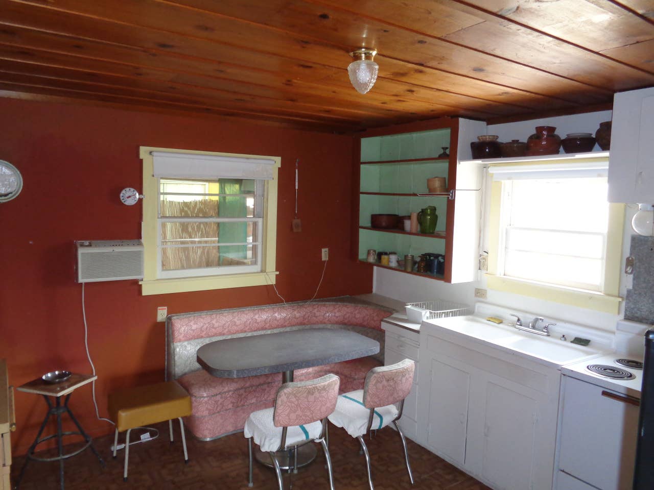 The kitchen, bedroom and living room all have separate air conditioners (space heaters in winter). The bathroom is in a small, detached building and includes a toilet and sink, and there is a nice outdoor propane shower adjacent.