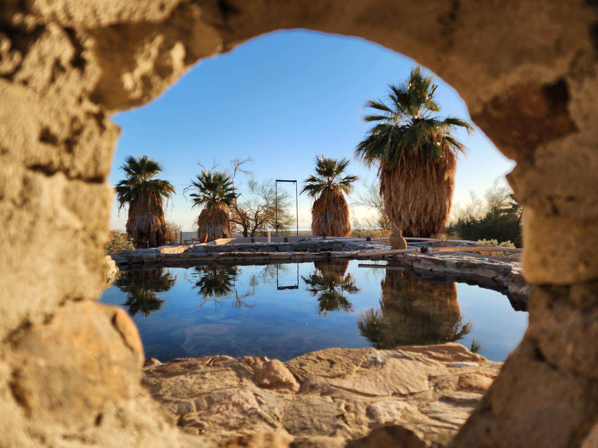 Hot Springs w/cabin rental on organic date farm in California desert.