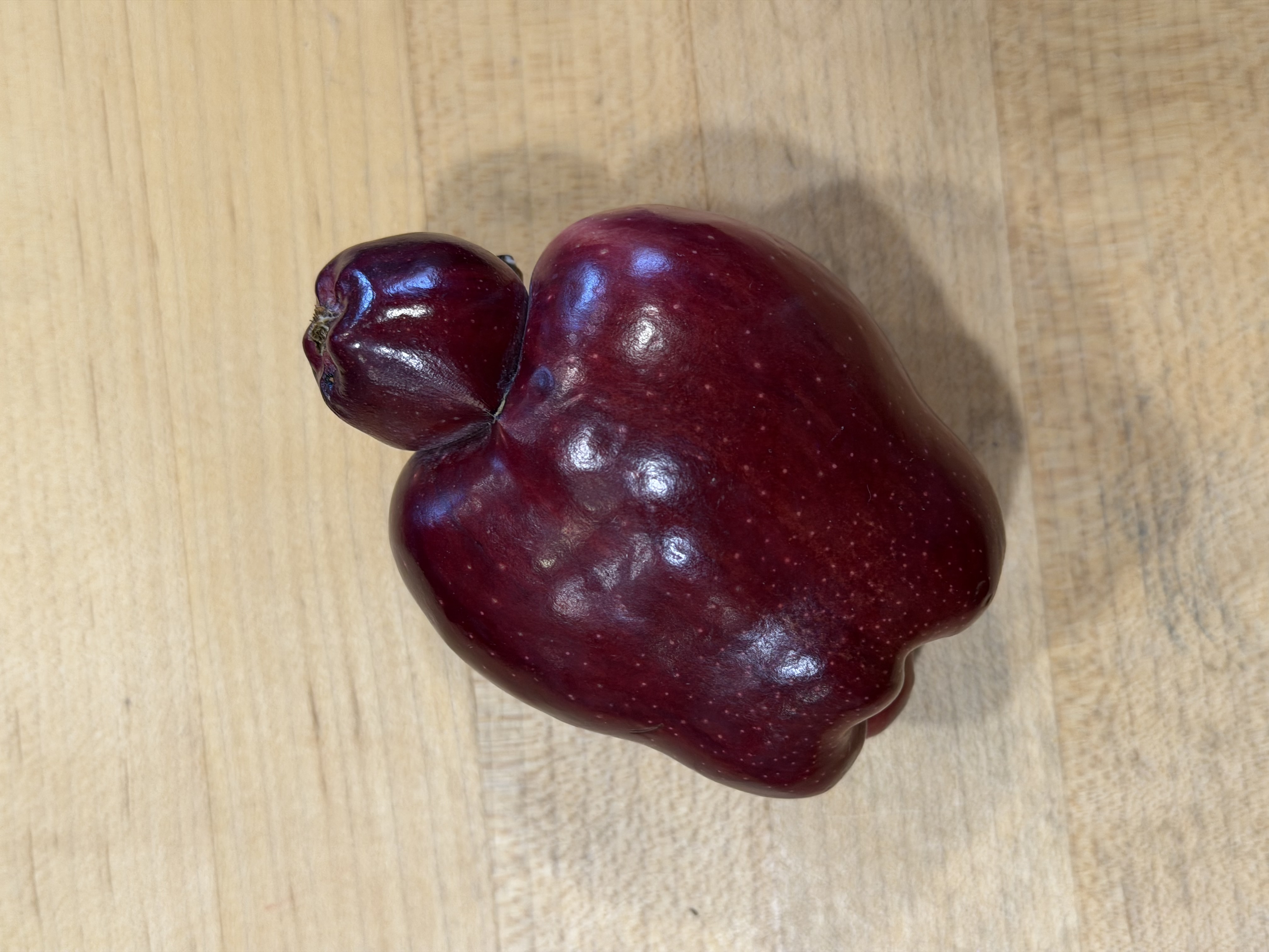 I have seen a number of varieties of co-joined fruit: apples, peaches, pears, plums, cherries, tomatoes, sugar pie pumpkins, zucchini, raspberries. mulberries, acorns, black walnuts, flowers, mushrooms etc. Mostly because we were encouraged to look for oddities in nature.