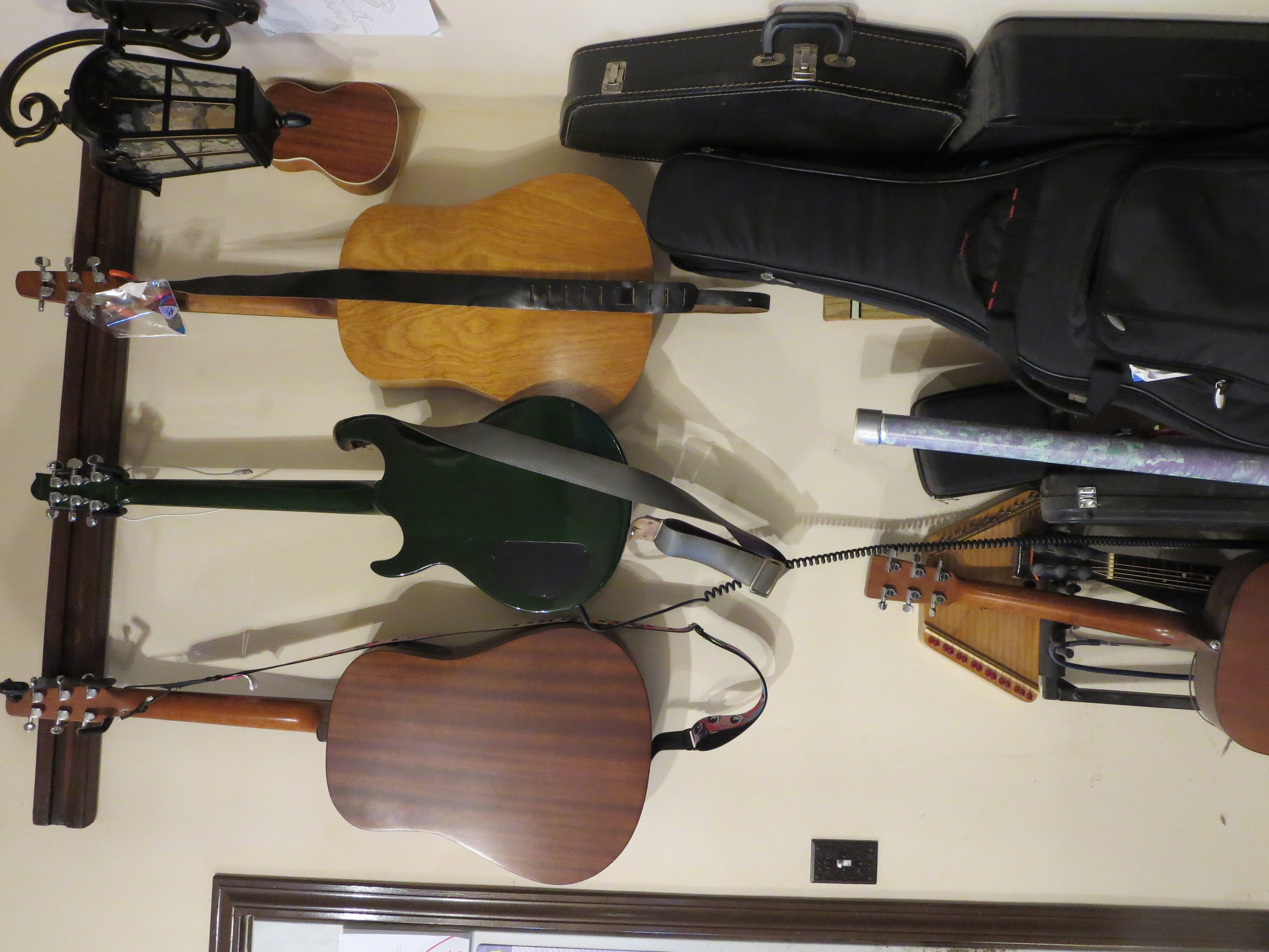 Philip McGarvey wrote:Hanging them on the wall is the way to go, so you don't accidentally set things on them or knock them off something, and so they're always accessible to play.
