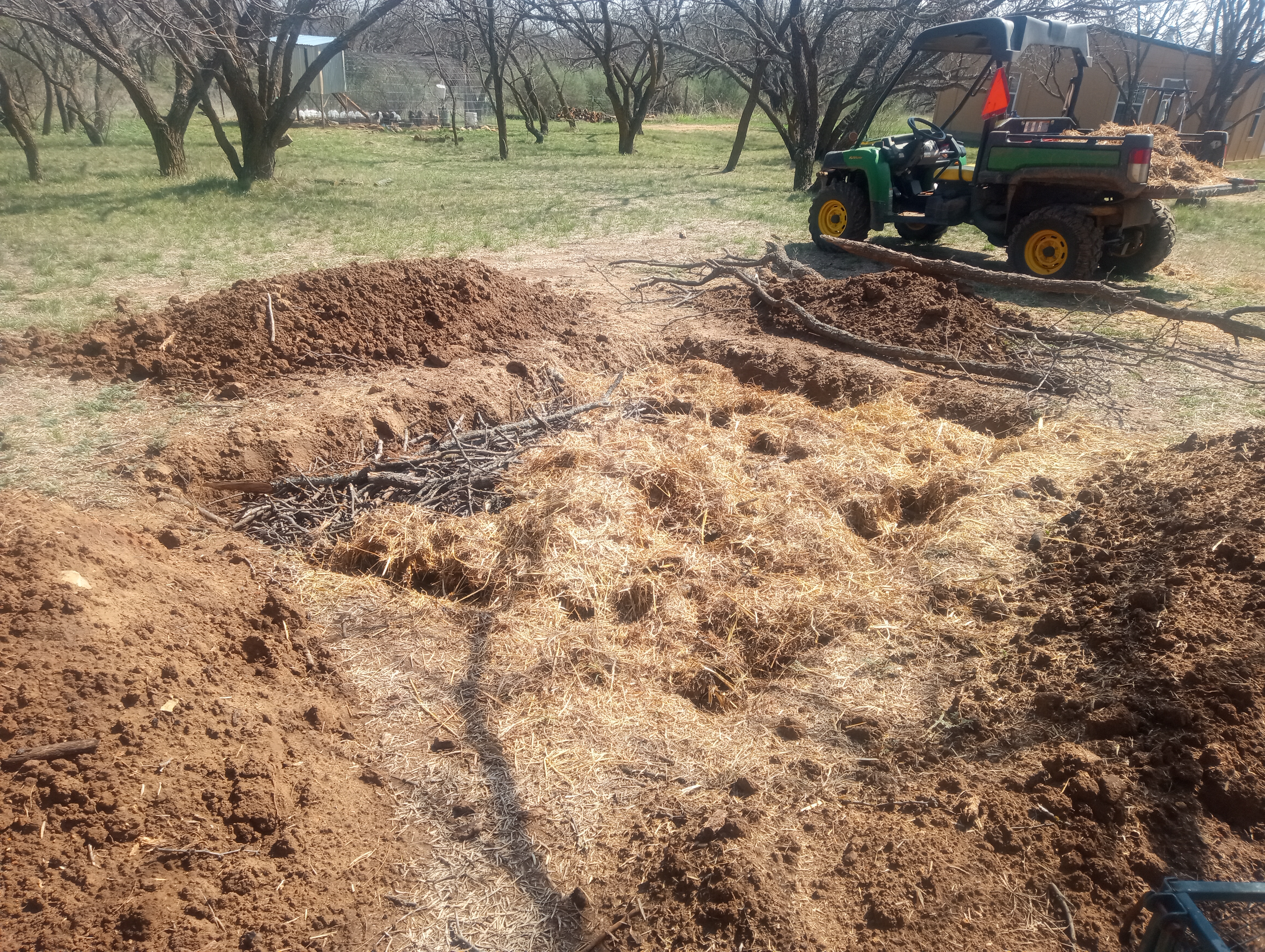 2. We’re looking at creating a hugelkultur in an area that’s barren dirt and sand. Very dry, nothing grows there, can hardly even get mesquite or cactus to grow there. If we dig down (with a machine), fill it with mesquite, and then pour the super pour soil over top, how quickly do you think it will take before the soil is improved?