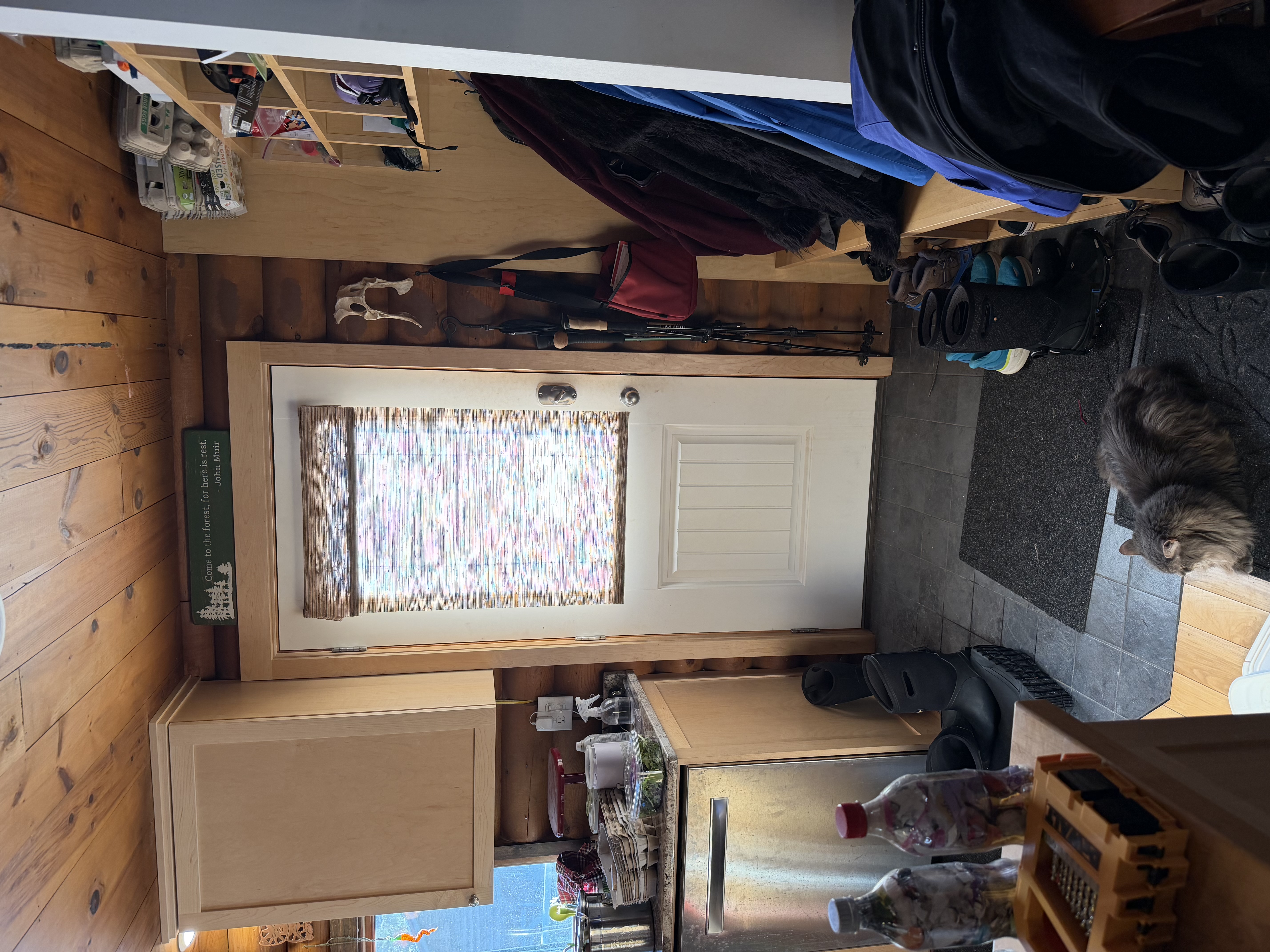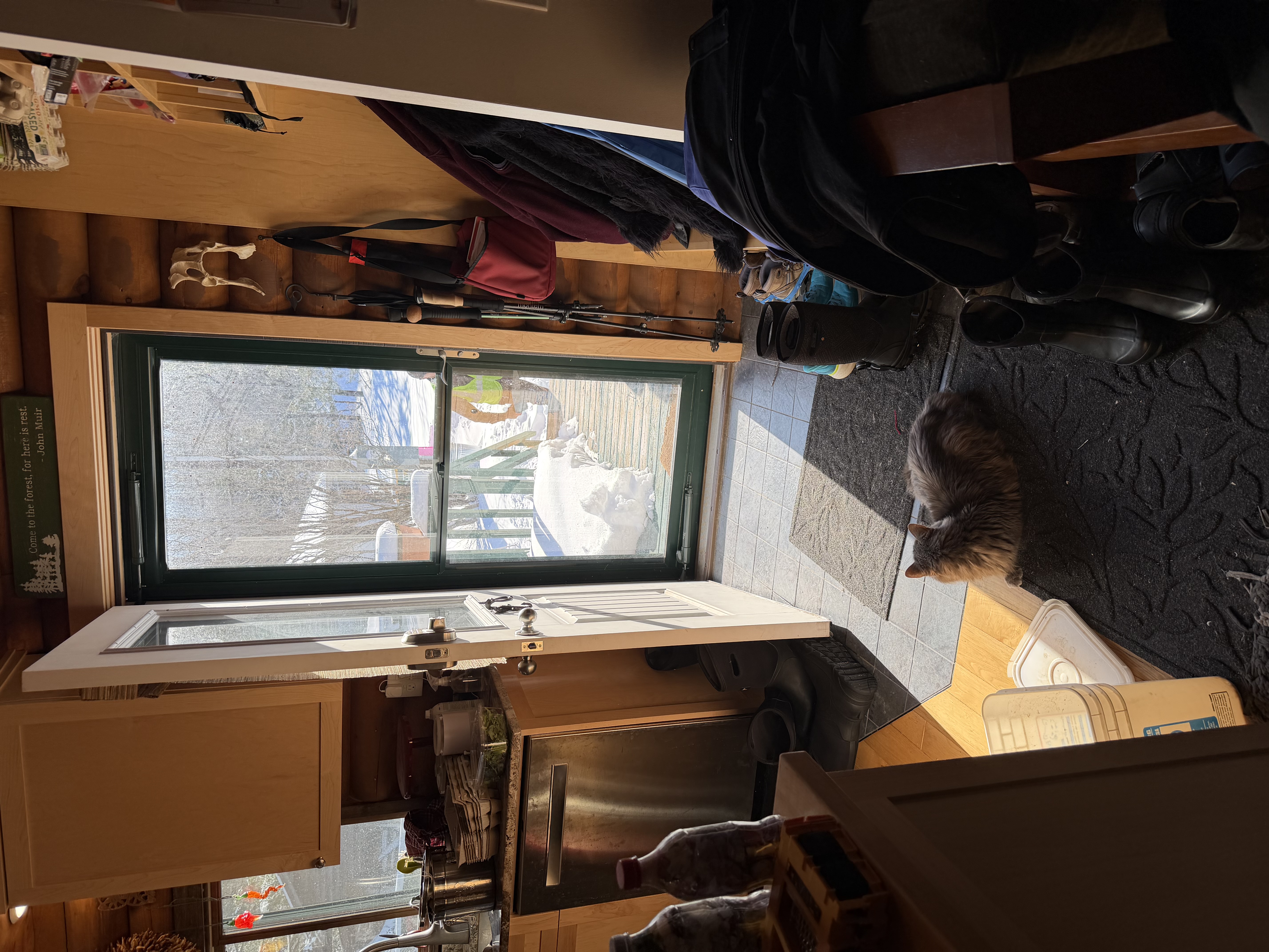 Chris, Just to be clear, that's a glass storm door on the outside, not a screen door, correct? Even as a glass storm door has low insulating value, I think on sunny days the gain is pretty worthwhile, just in sunlight and effect on mood! I'm assuming that is south facing....just like us, I suppose there are days to be concerned about nasty SE and SW winds, but our worst right now are the NW ones Douglas A is sending down from the prairie provinces. Even as it didn't clear 25F today, the sun was allowing for puddling around the yard and driveway....makes for muddy dogs, but the geese and chickens are pretty happy. [Unfortunately, we are dealing with a rogue mink lately and learning which houses need serious refurbishing this summer! ] Nevertheless, on days like this, my wife will open the large south-facing garage door on the insulated barn and the sun does wonders! Pigs, chickens, dogs all stretched out along the entryway enjoying the light and heat. What it does for attitude compensates in my mind for a bit of lost home heat. Edited to add, not looking forward to near zero again on Sunday and Monday night....