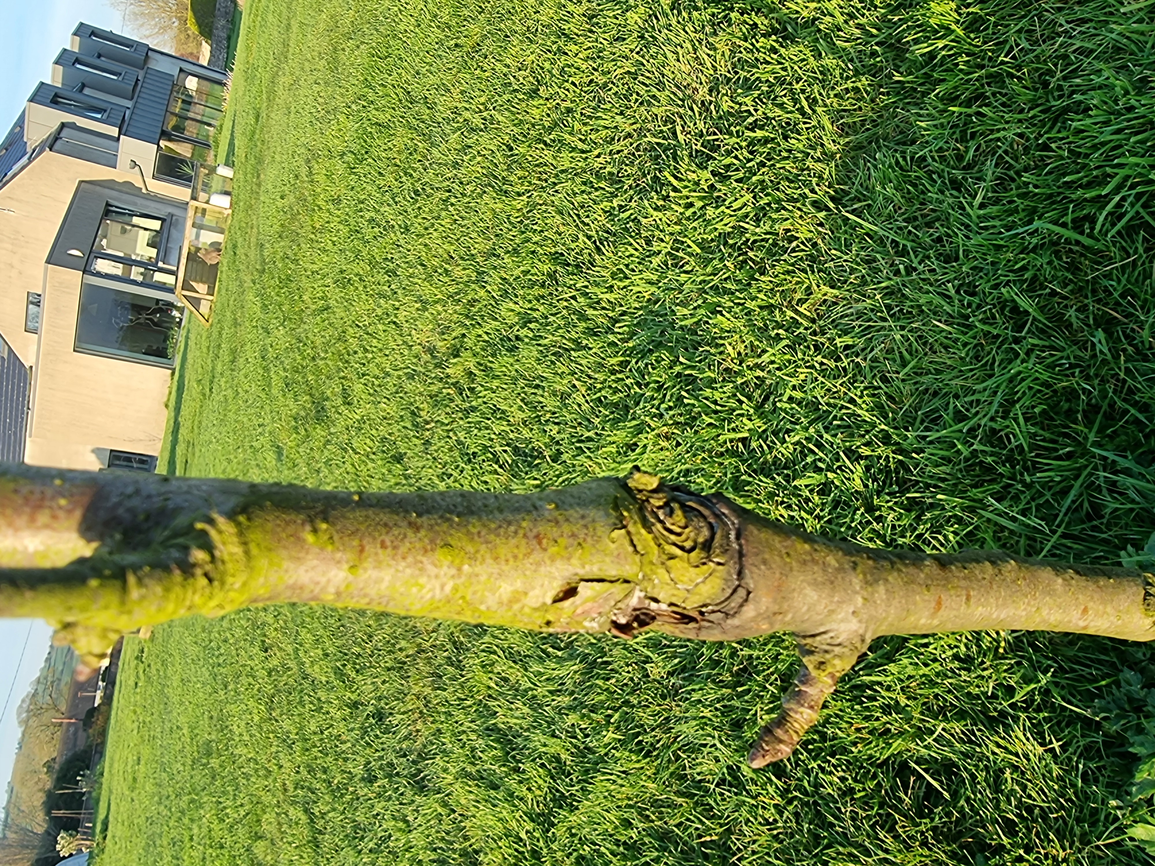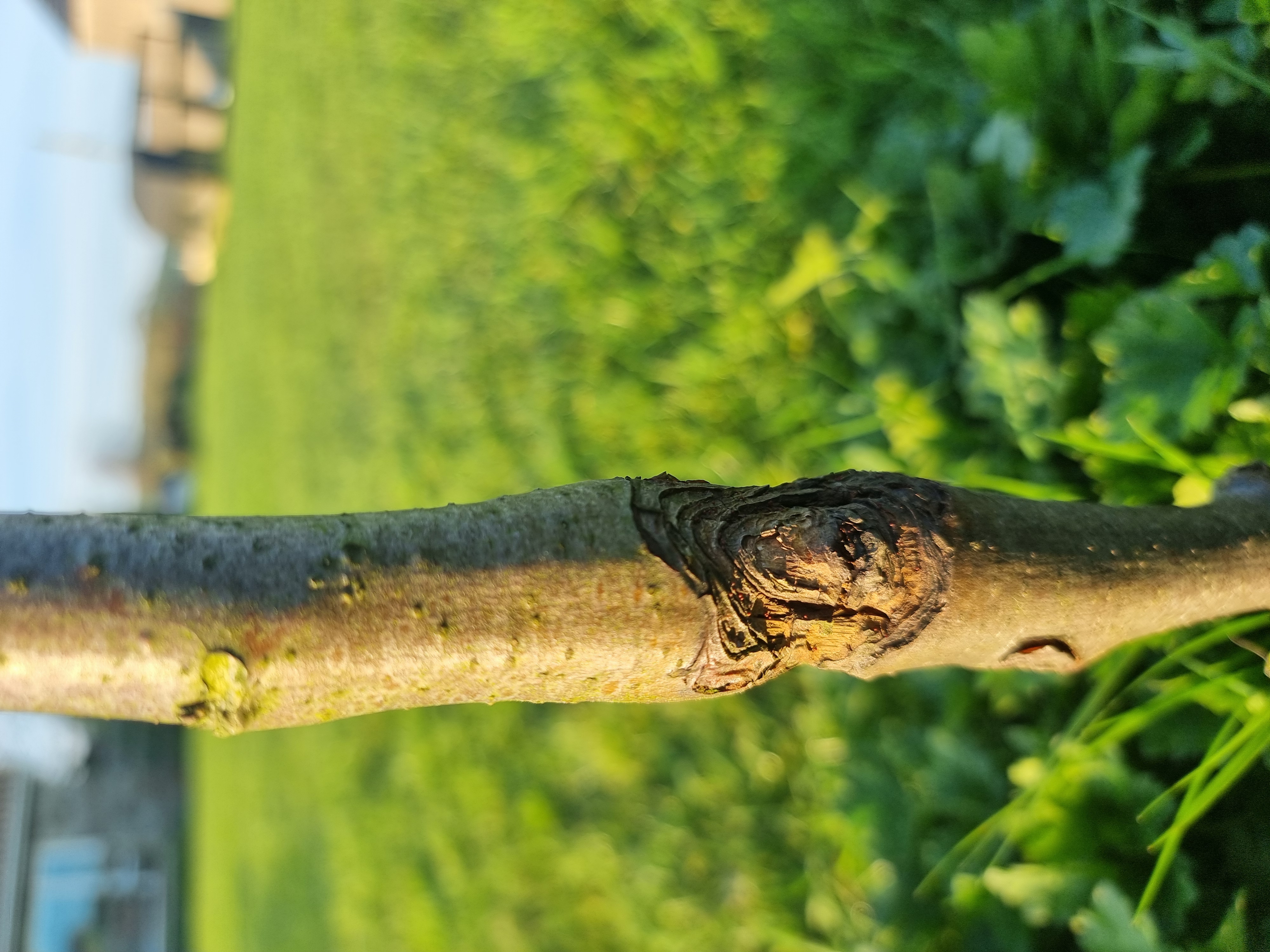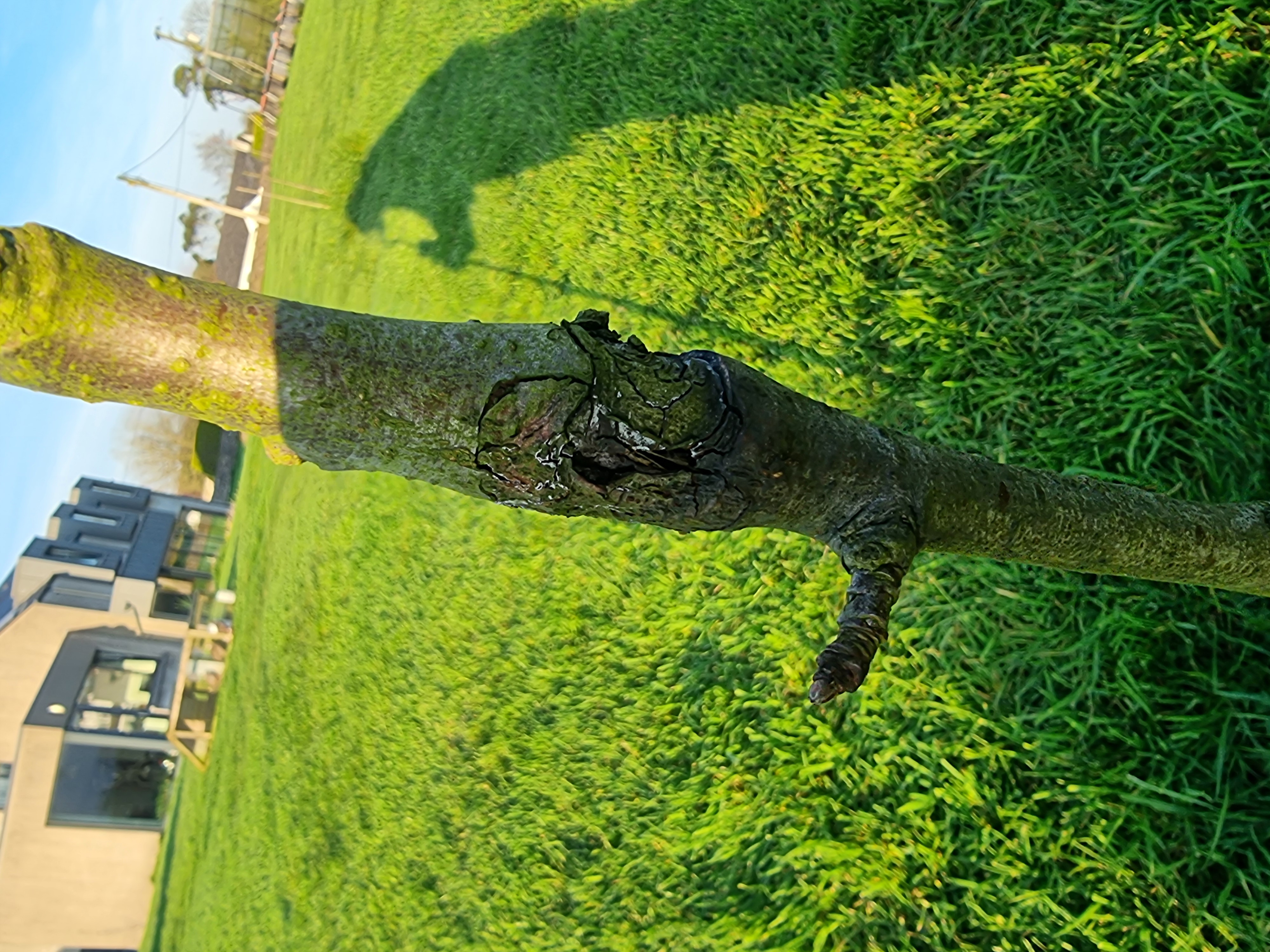 In two places on the trunck there are dried cracked areas, one going fully around the trunck the other almost there.