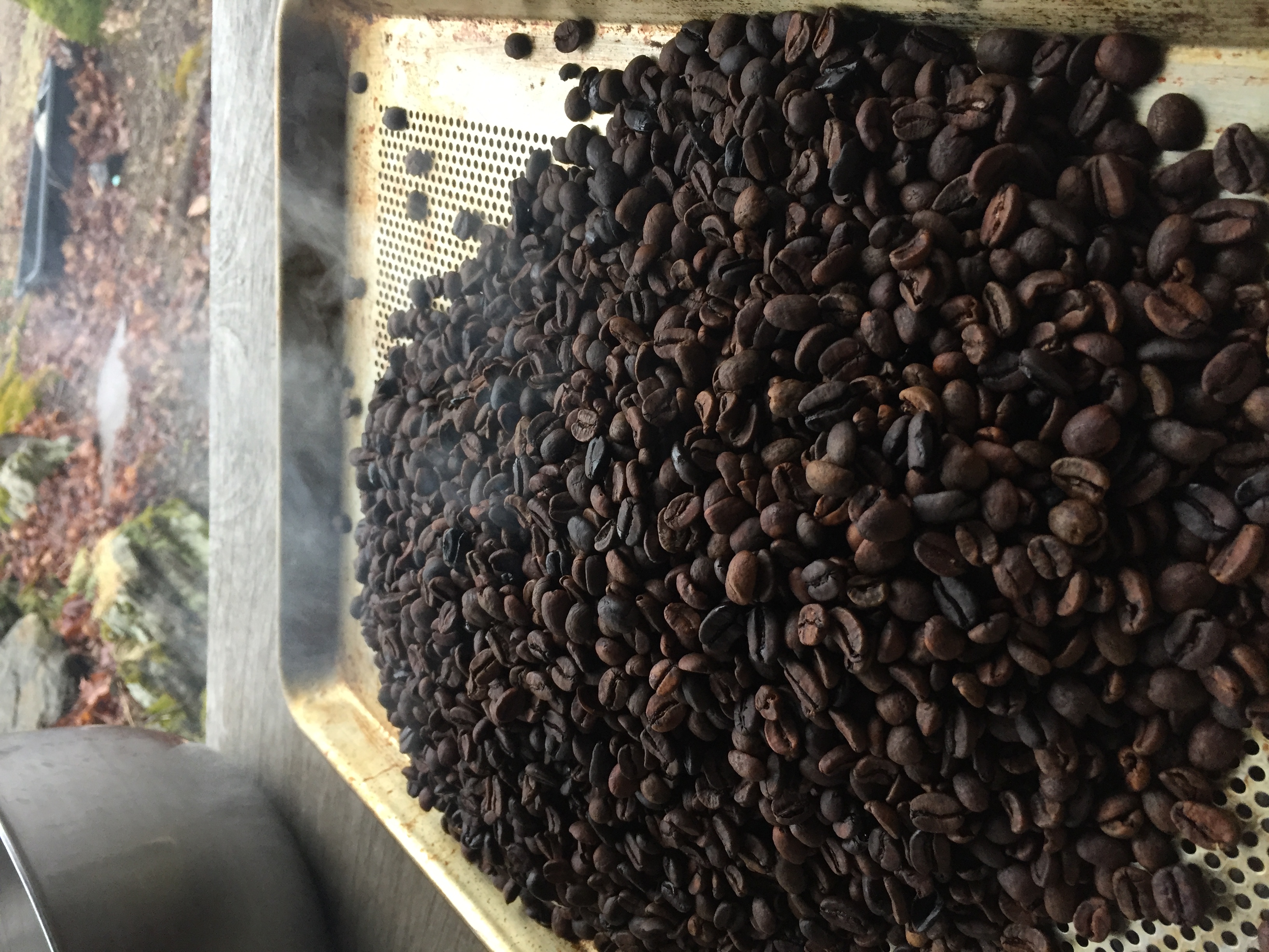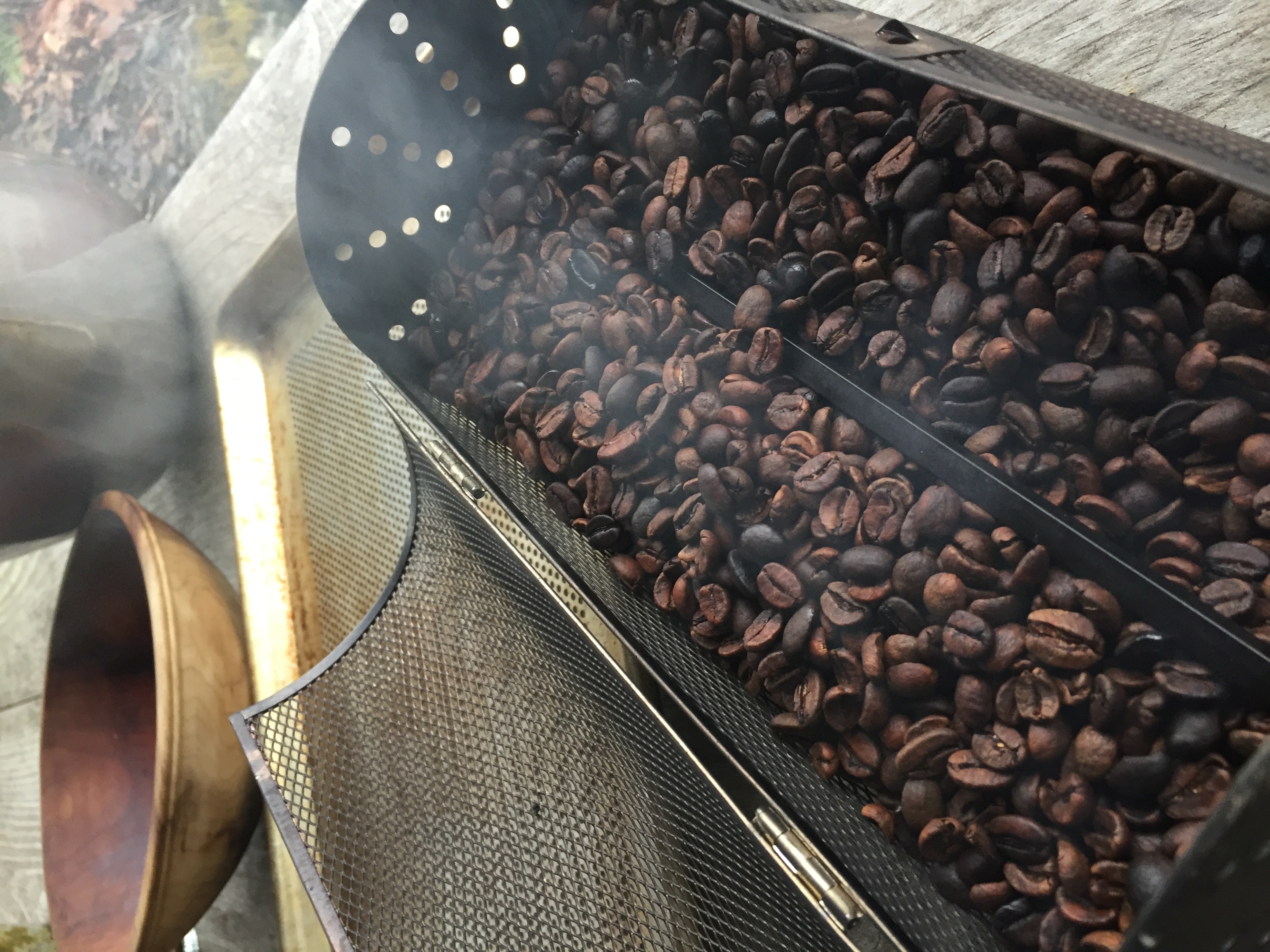 We roast 7# of coffee every month in our earthen bread oven. We get our green beans beans from