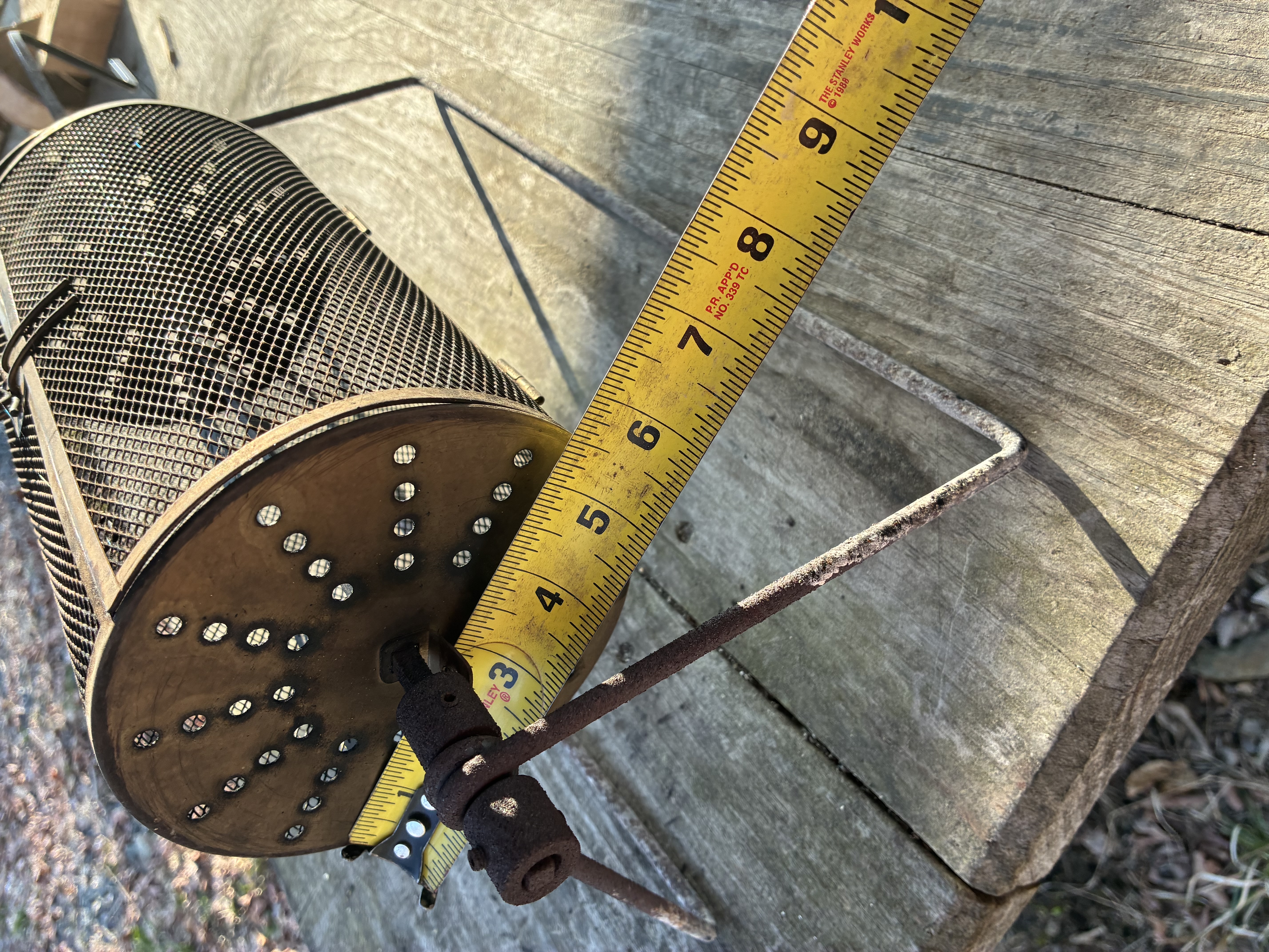 We roast 3 - 2 ½ # batches of coffee about once a month in a cylindrical basket. I tried to send a couple little movies but this board wouldn’t accept them. Let me know if you’d like me to send a photo of the basket or bread oven.