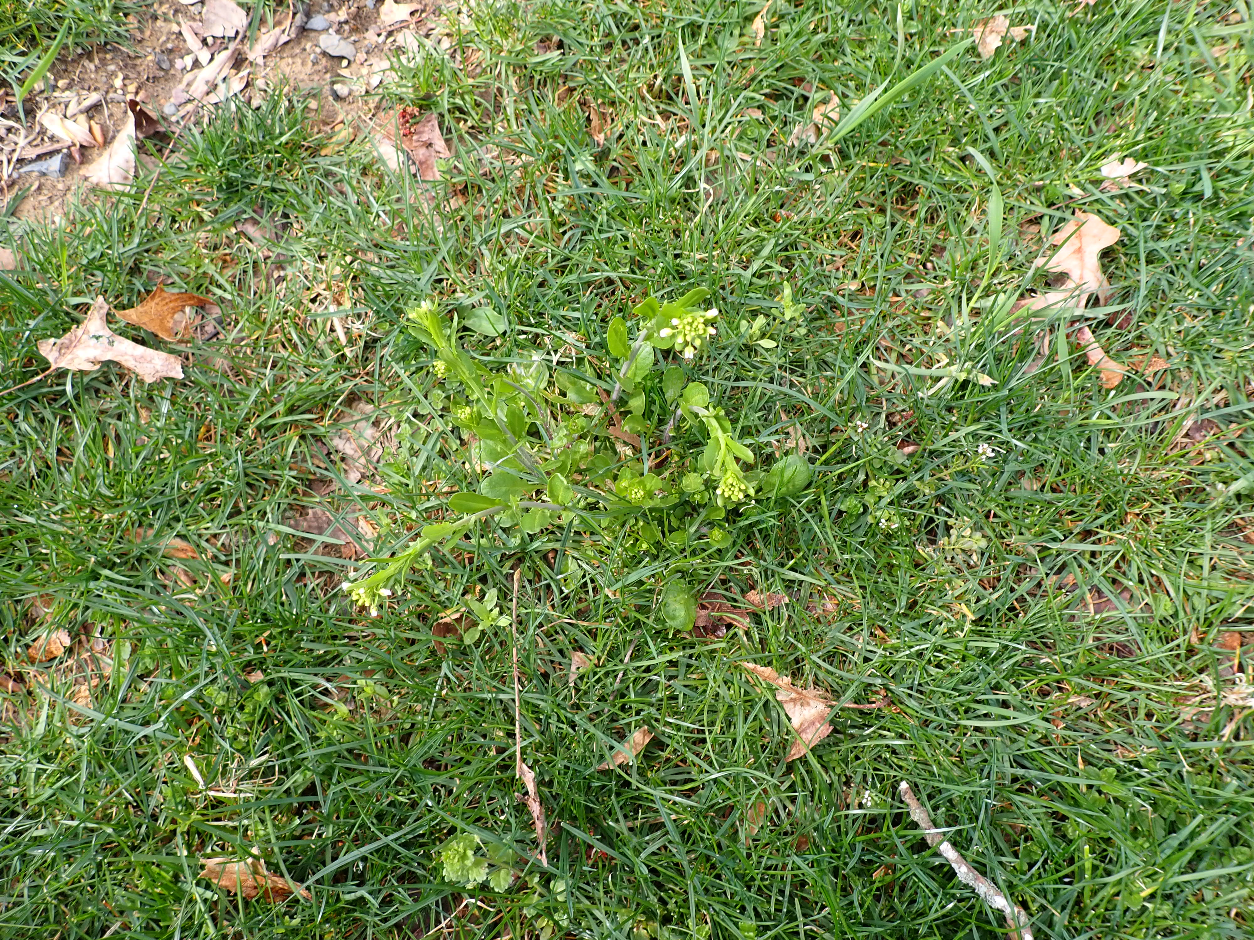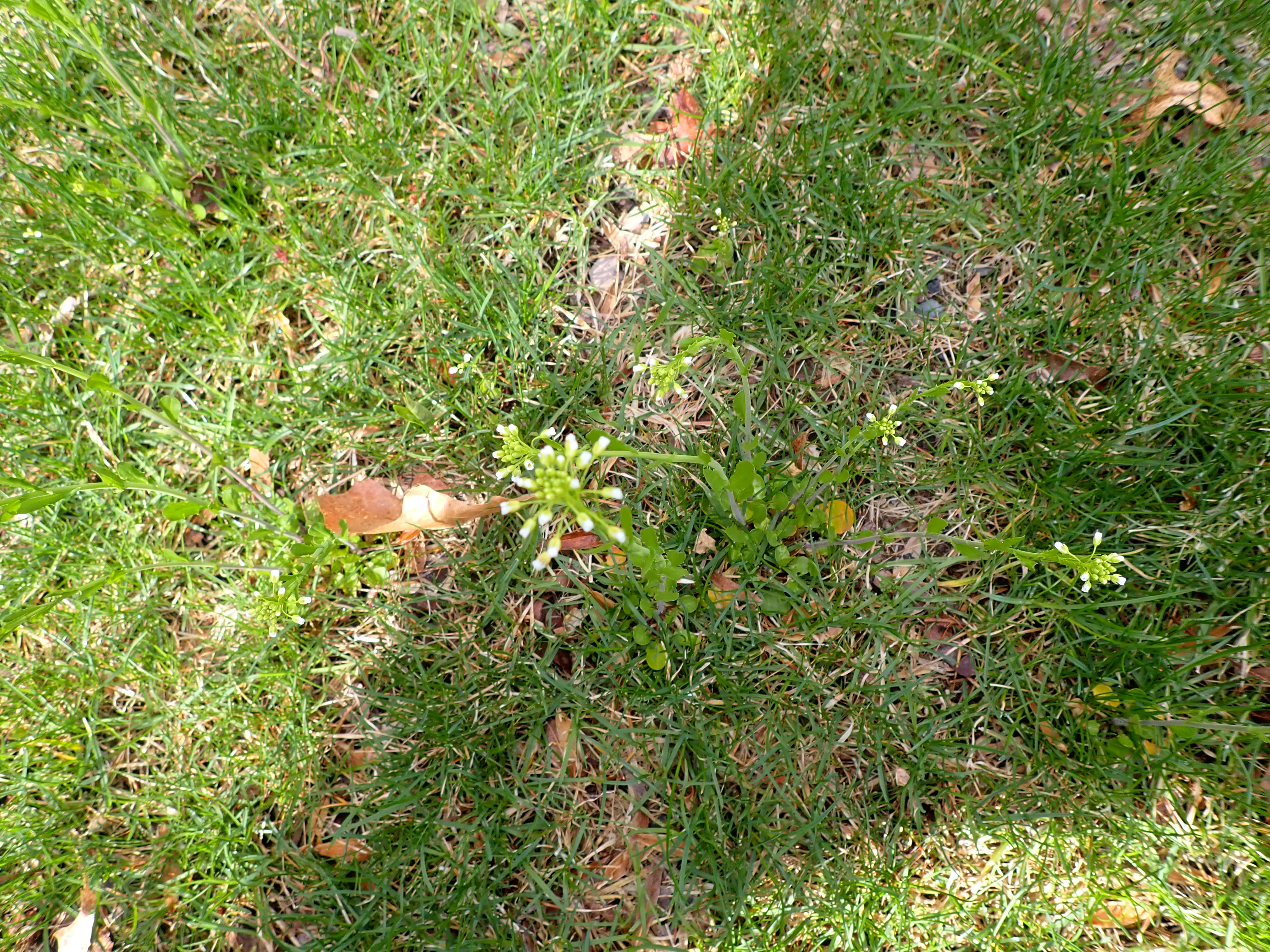 My best guess is Thlaspi arvensis, field pennycress. They are a good edible green, somewhat mild and cabbagey.
