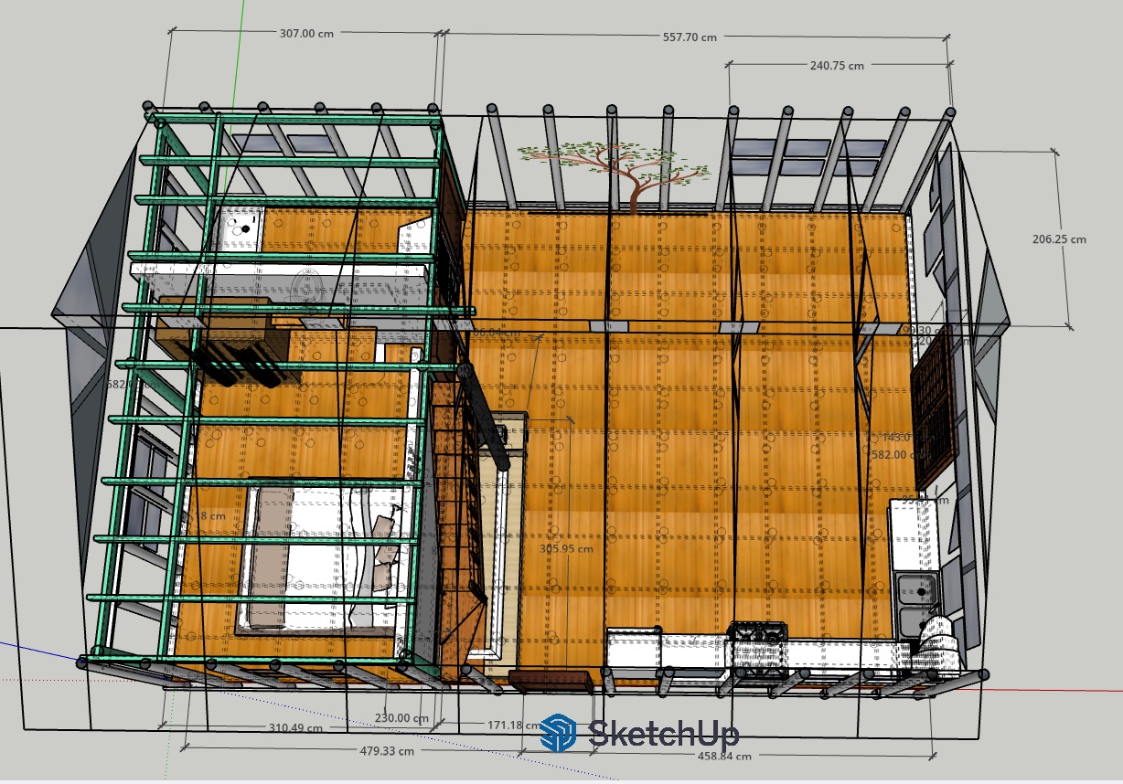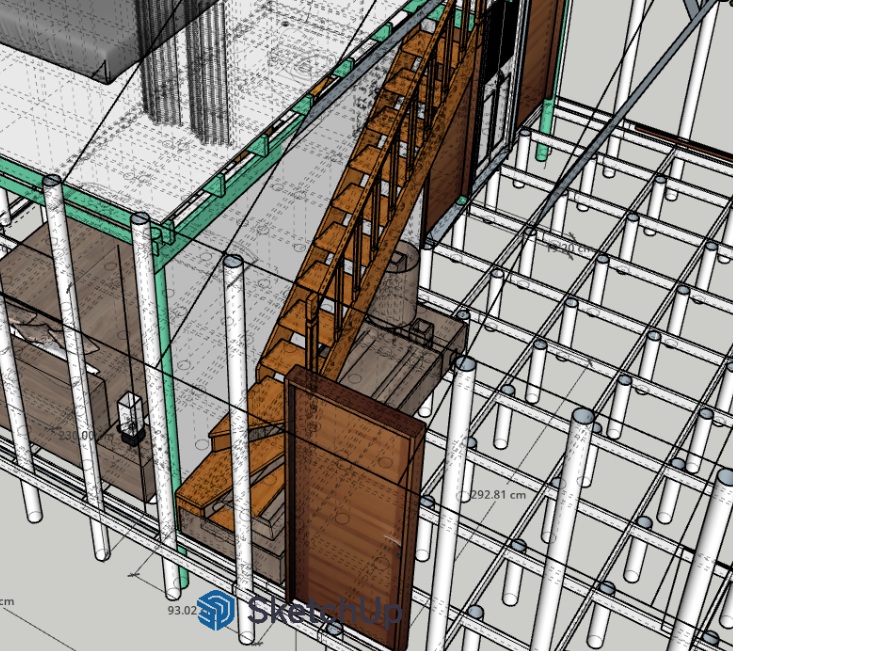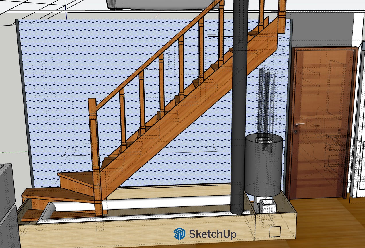 None of this except the frame/roof has been built yet so we can modify the design and materials of the stairs to fit over the RMH in the safest way available.