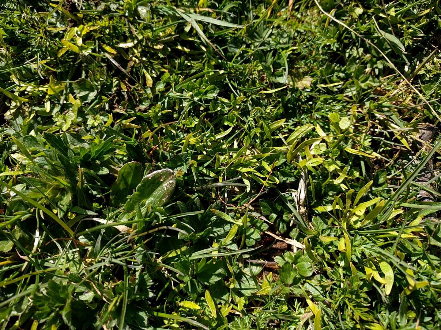 Trouble is they're coming up, not in the prepared garden bed, nor the area where the parsnip went to seed over the last two years, but the path in between which is compacted and unimproved meadow grass!