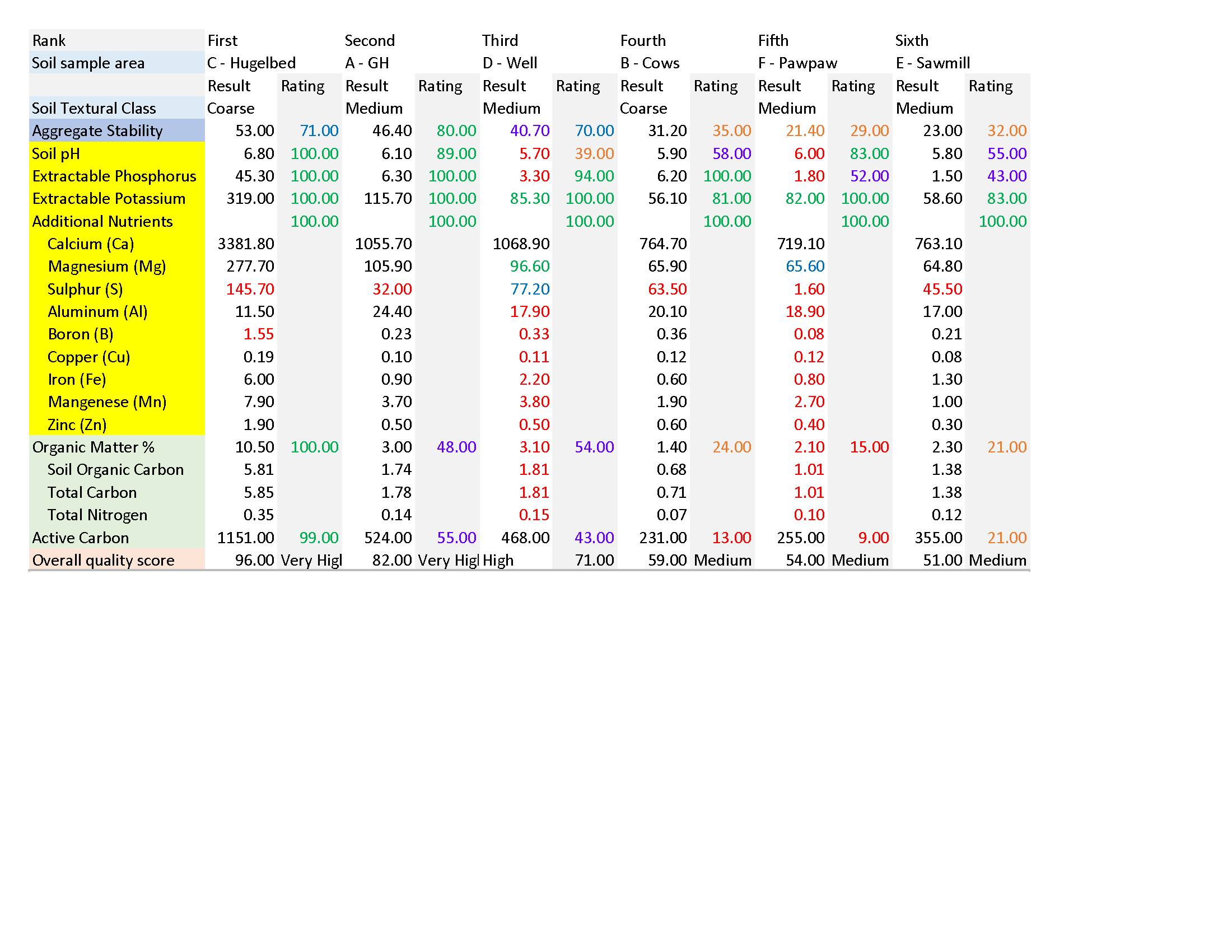 One of our above ground hügel beds is 7 years old and is the most productive, balanced soil at the farm (attached is a soil test report that shows difference between different soils at the farm). Within 2 years of completing it, the soils came to balance without any supplements and are now growing 3 times bigger plants compared to grown in other soils at the farm.