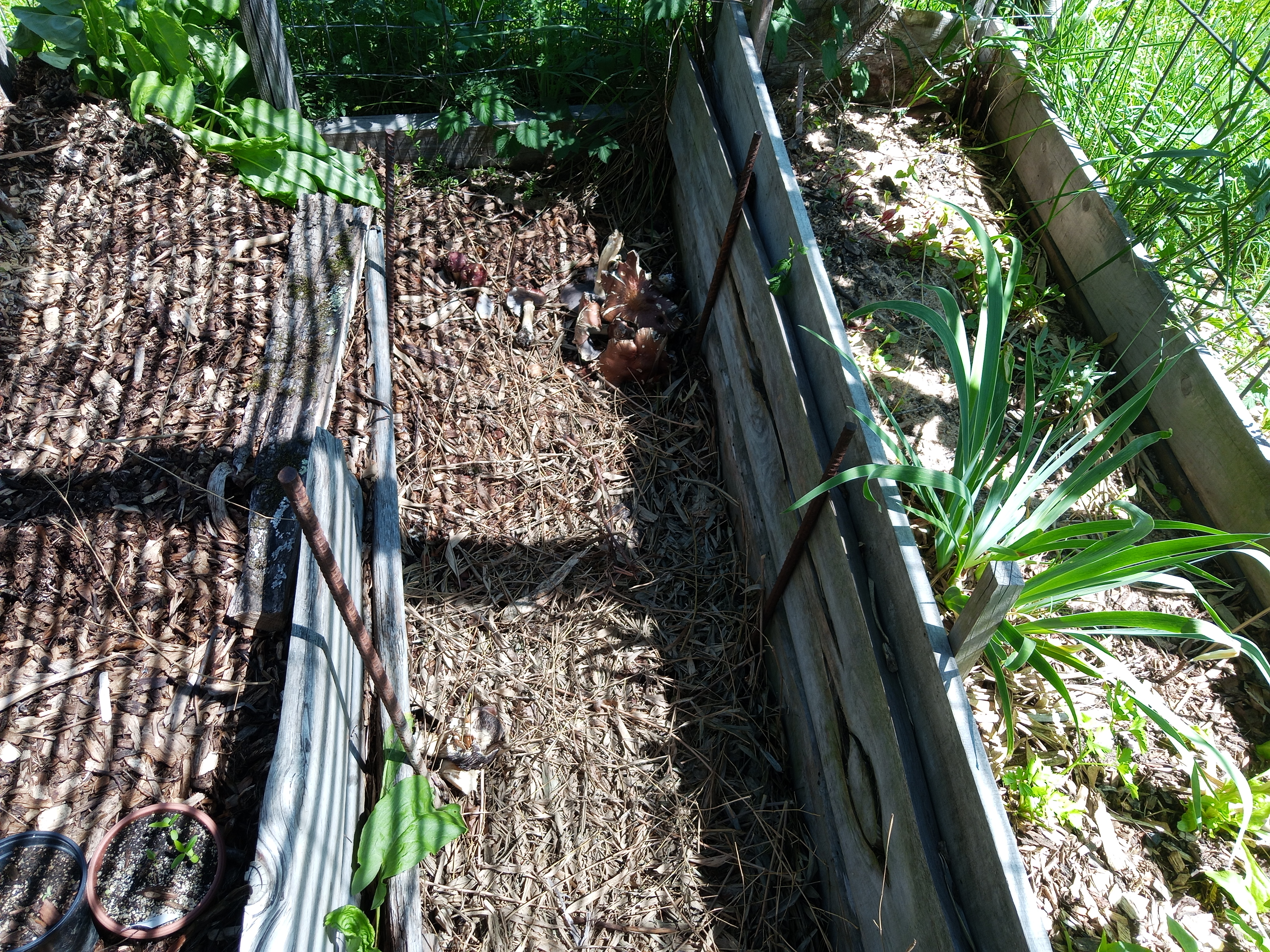 at first I thought they were shiitakes since I add old plugged logs to those beds and get an occasional surprise mushroom.