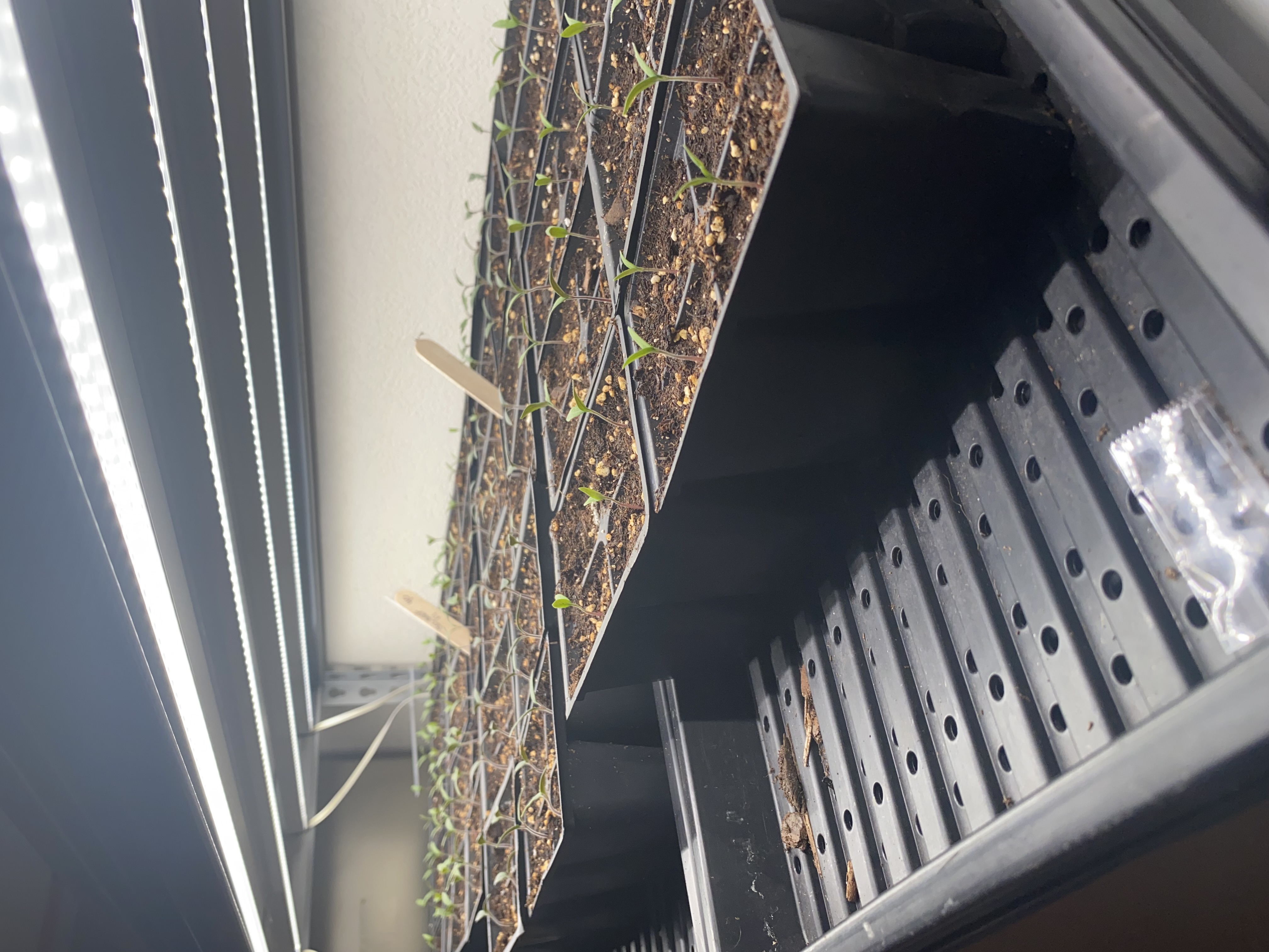 I typically start twice as many seedlings as i plan to use, (currently have approx. 450 seedling started and germinated for this season. I generally use Johnnysselectedseeds.com as my preferred seed supplier and have always had excellent results from growth to disease resistance as well as overall yield) these are started on a 2x4x8' rack utilizing 2 sets of 4' 8 bar sets of 20w barrina grow bars i will share pictures of in my next post.