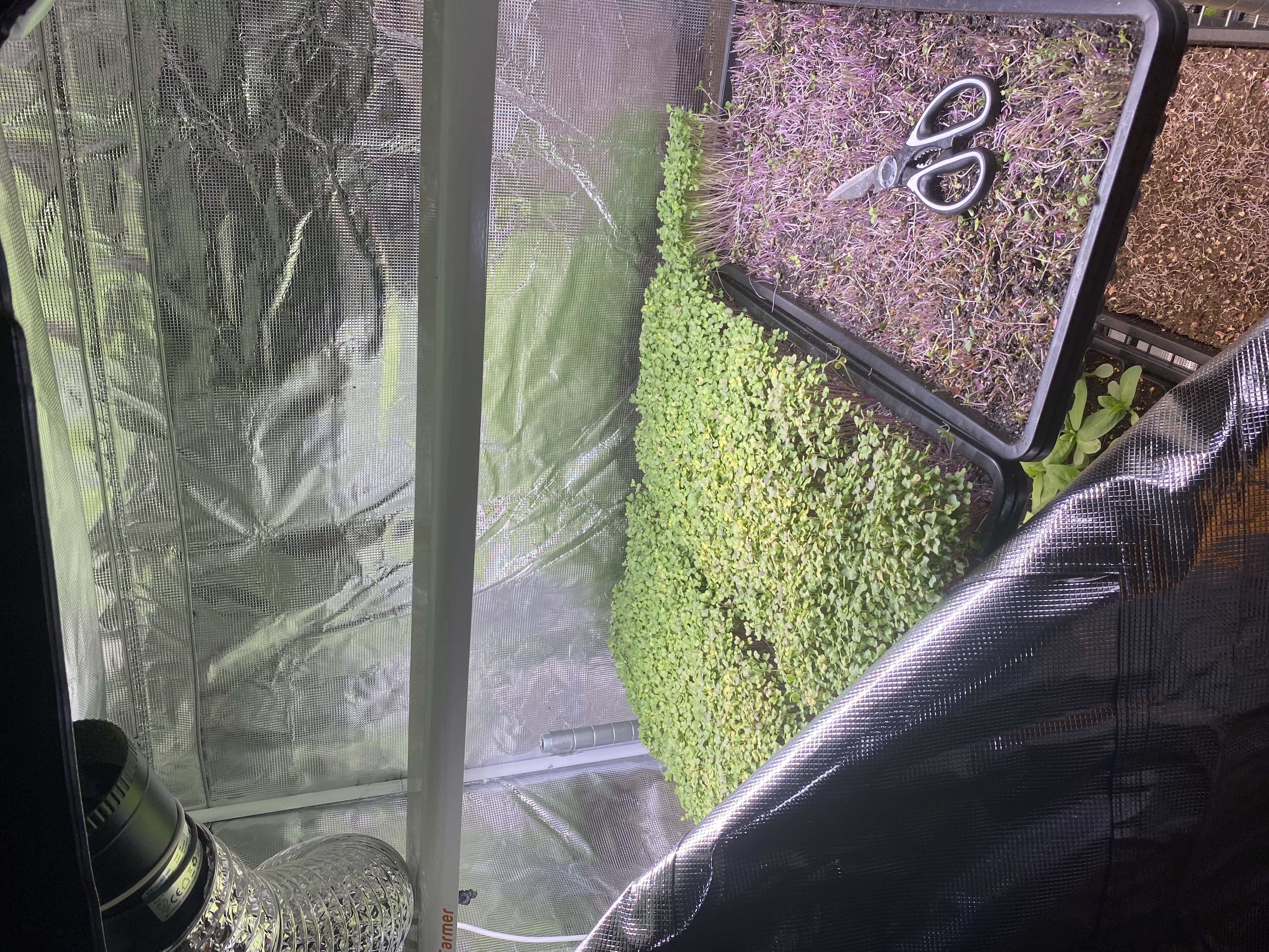 The 2x4 tent i use mainly for microgreen treys, (i also have 50 zinnias started in it as well) along with some aloe plants.
