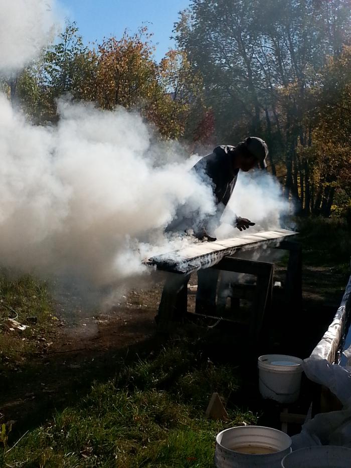 Jay C. White Cloud wrote: I would suggest a good oiling with one or a blended mix of pine tar oil, flax oil, tung oil, etc. Do this to both sides and before charring with this species.