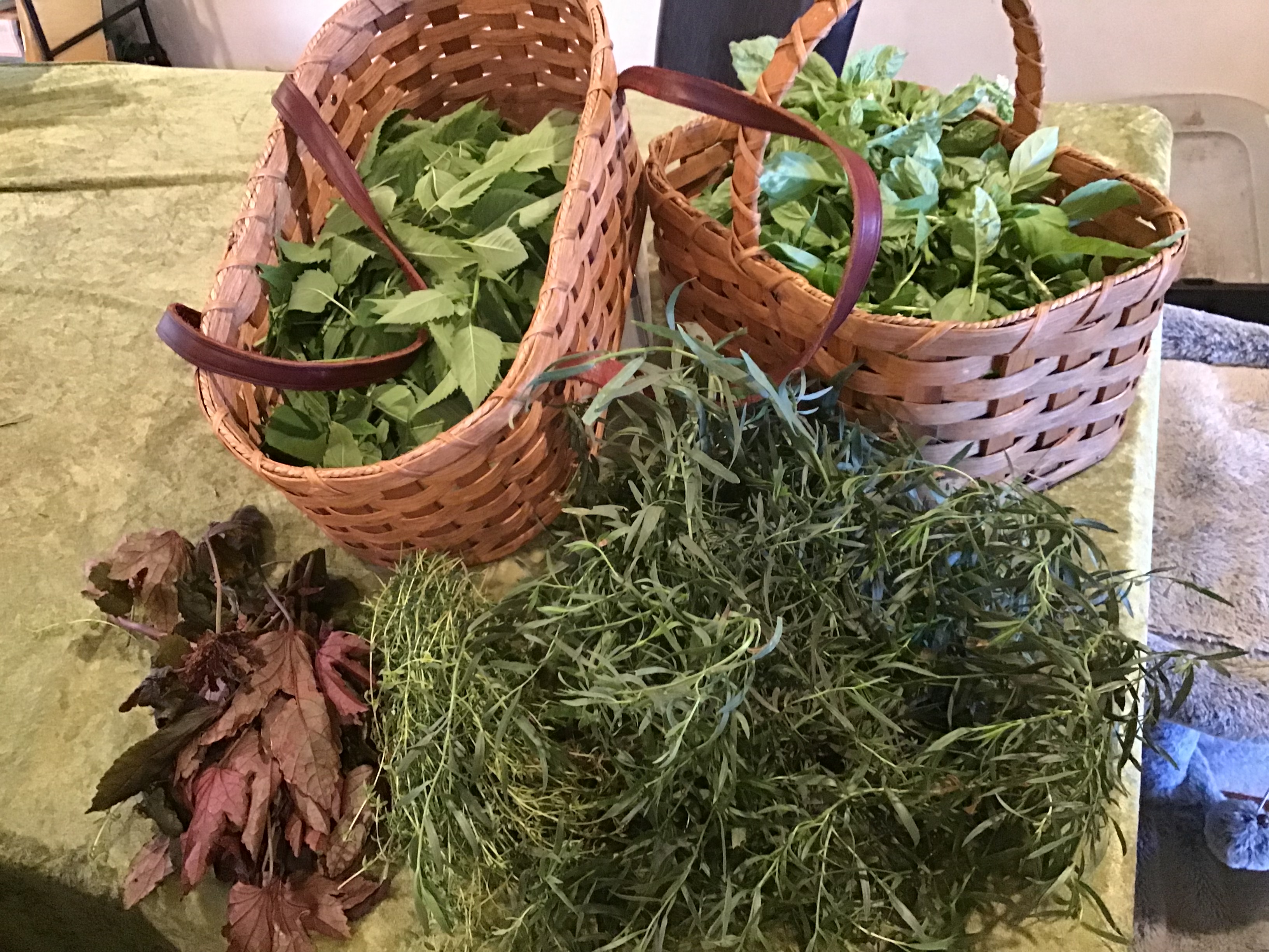 In the herb garden, we’re making pesto from our basil and enjoying purple basil tea—a delicious summer treat I highly recommend.