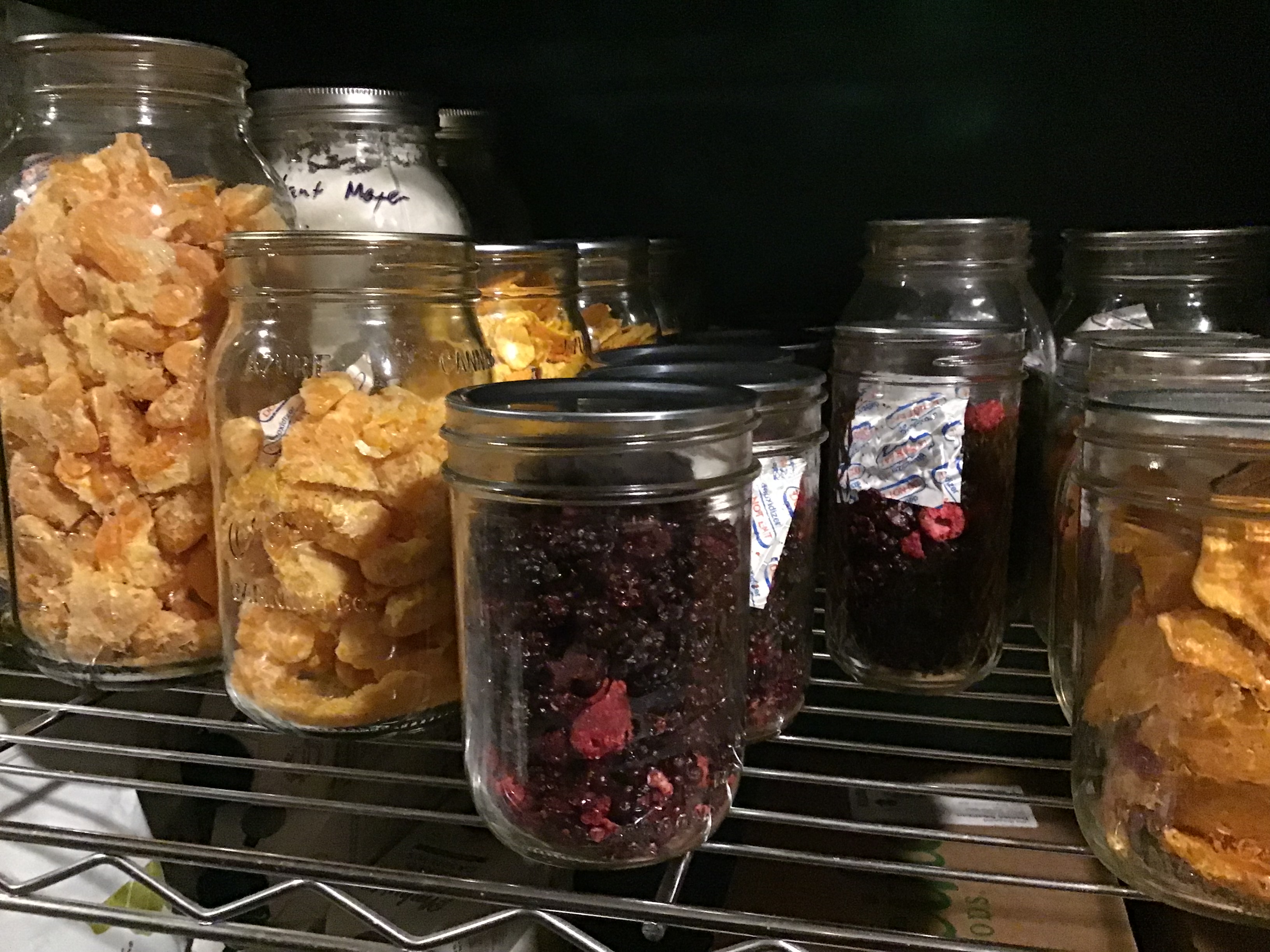 It’s fruit preservation season, but my freeze dryer broke down. No worries—we’re canning and freezing instead. My shelves are filling up, and my freezers are packed (we have 4). This week, we added 12 quarts of cherry pie filling to the shelves and froze blueberries, lychee, dragon fruit, mangosteen, and rambutan. I was also able to start a new batch of peach scrap vinegar.