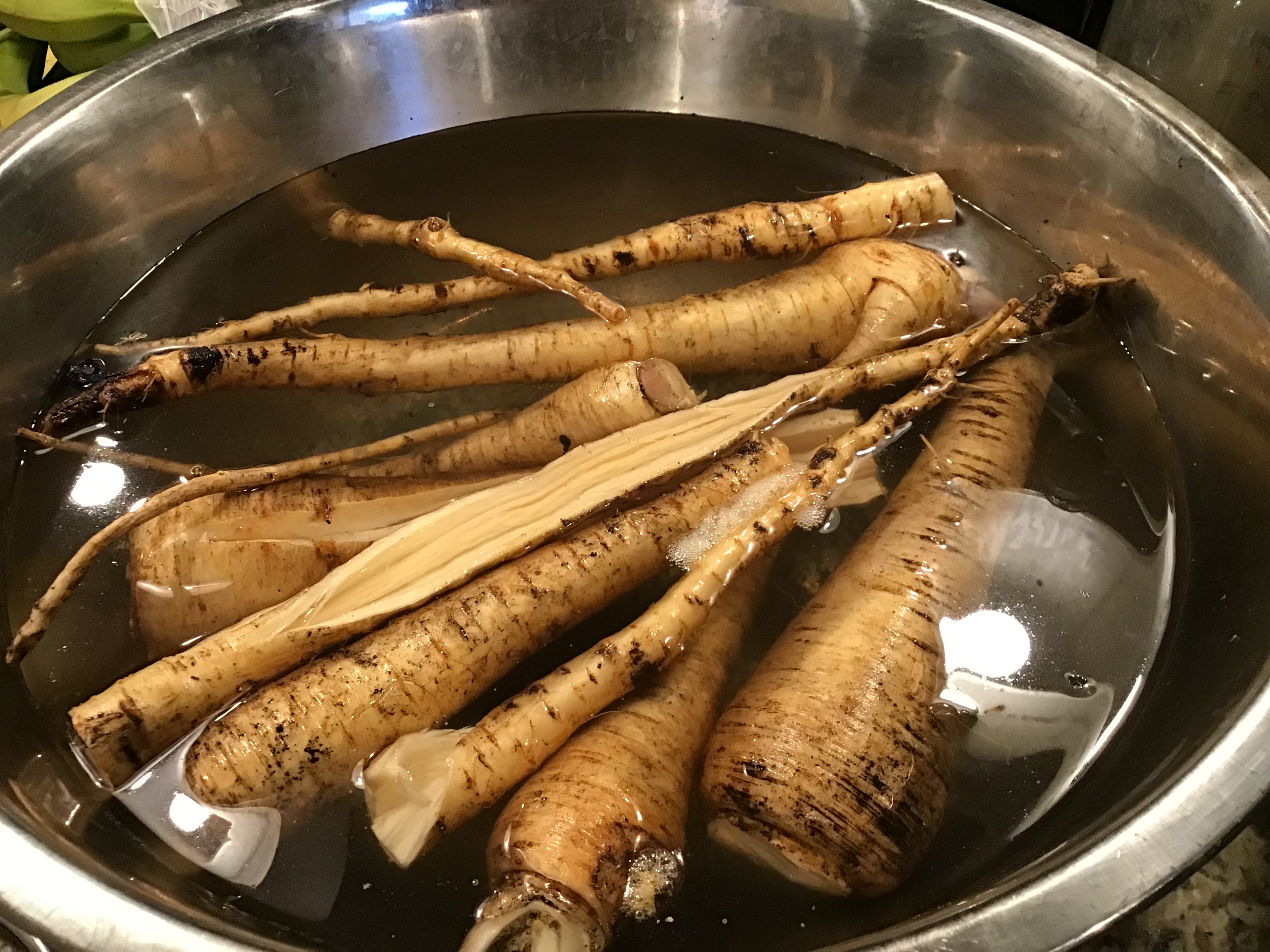 We’re out of hot cereal and granola, which we make from scratch. Granola will wait until we harvest sweet potatoes, but I can start on hot cereal once the grains are steamed. Soon, I’ll harvest ginger and turmeric, both of which look fantastic this year after I missed some roots in last year’s beds, giving us an early start.