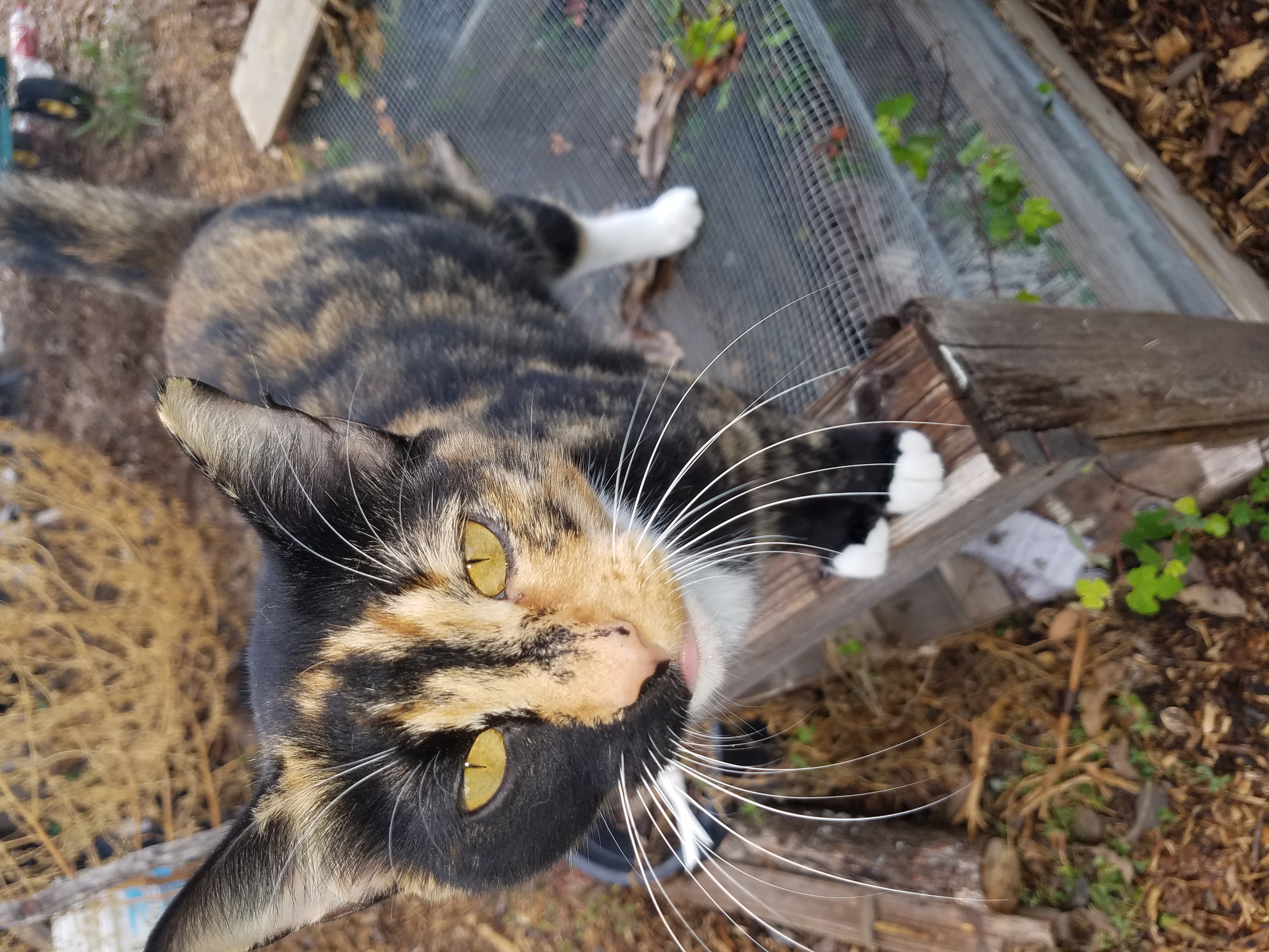 Macali (one of the resident felines) knows to keep an eye on El Chapo ...who is just hanging out hoping for a belly rub. Still he's not to be trusted.