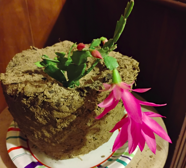 Cob pot (not fired) with Christmas Cactus - Merry Christmas y'