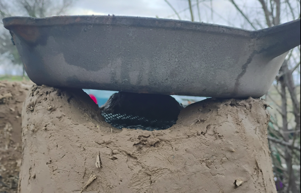 I cooked breakfast on the base of my chiminea this morning. I can't wait to put it all together. All the pieces got plastered with my clay, Brazos river sand, and ash, all screened thru a window screen (fine stuff). I'm gonna let everything dry tomorrow.