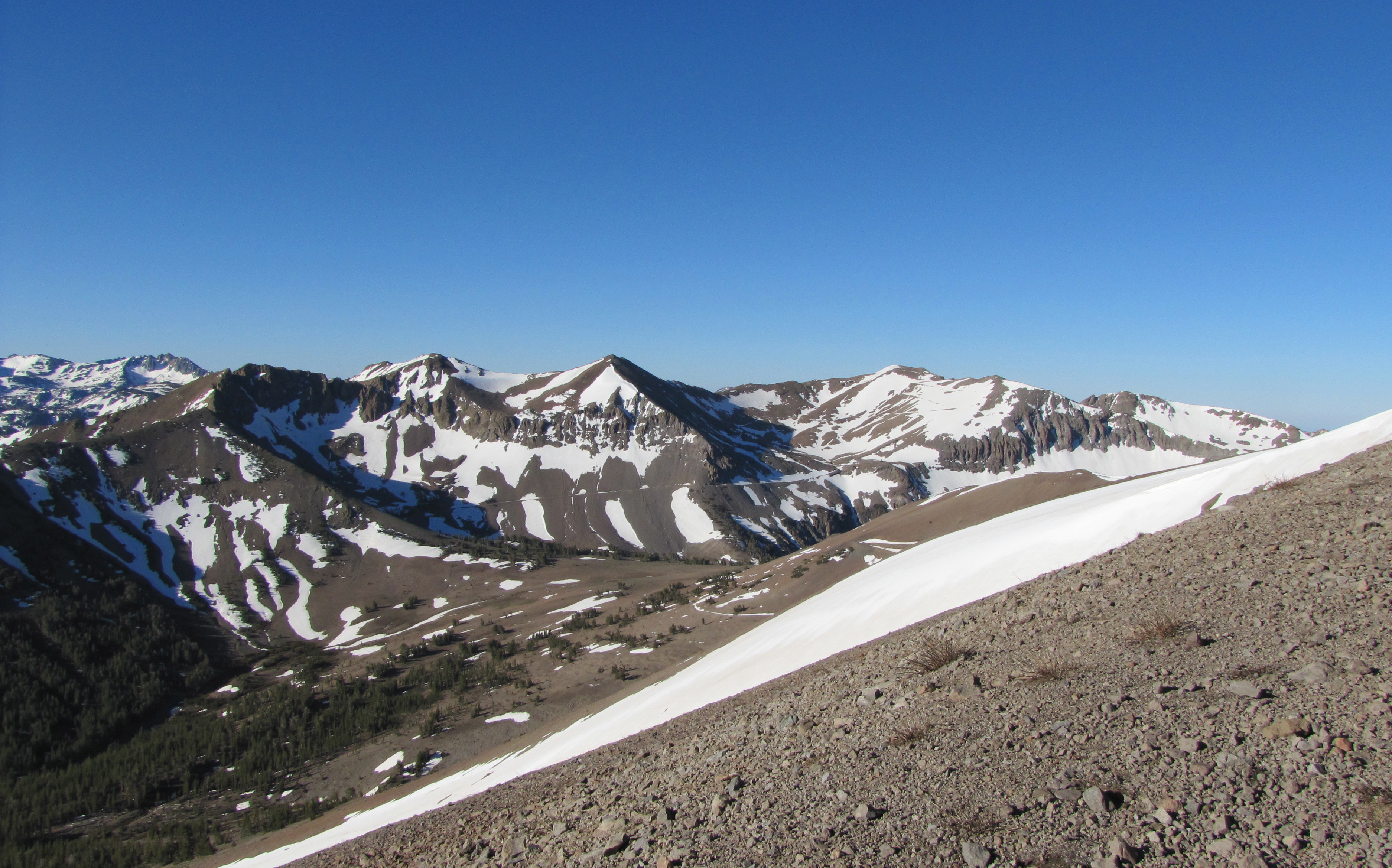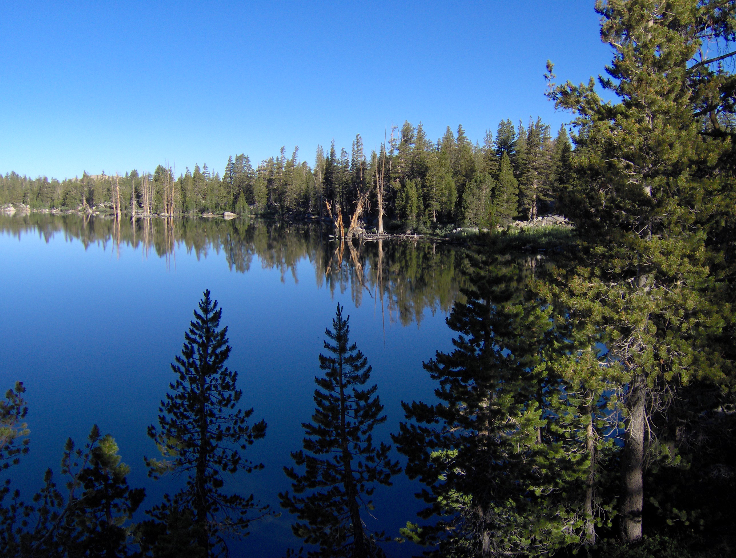 We usually start at Leavitt Lake, hike south over Big Sam (elevation 10,825 feet / 3299 m, Google Maps), down the North Fork of Cherry Creek to High Emigrant Lake, then on to Emigrant Meadow Lake, Lost Lake, sometimes to Emigrant Lake, other times up Emigrant Pass to Snow Lake.