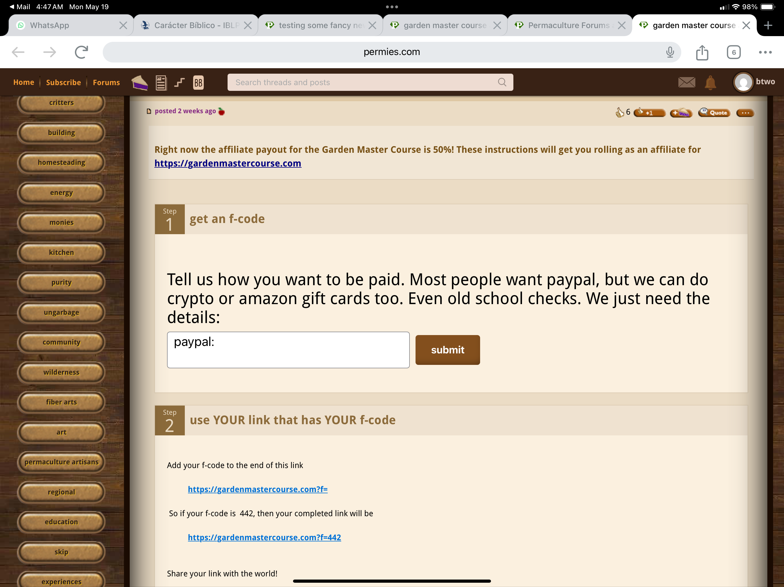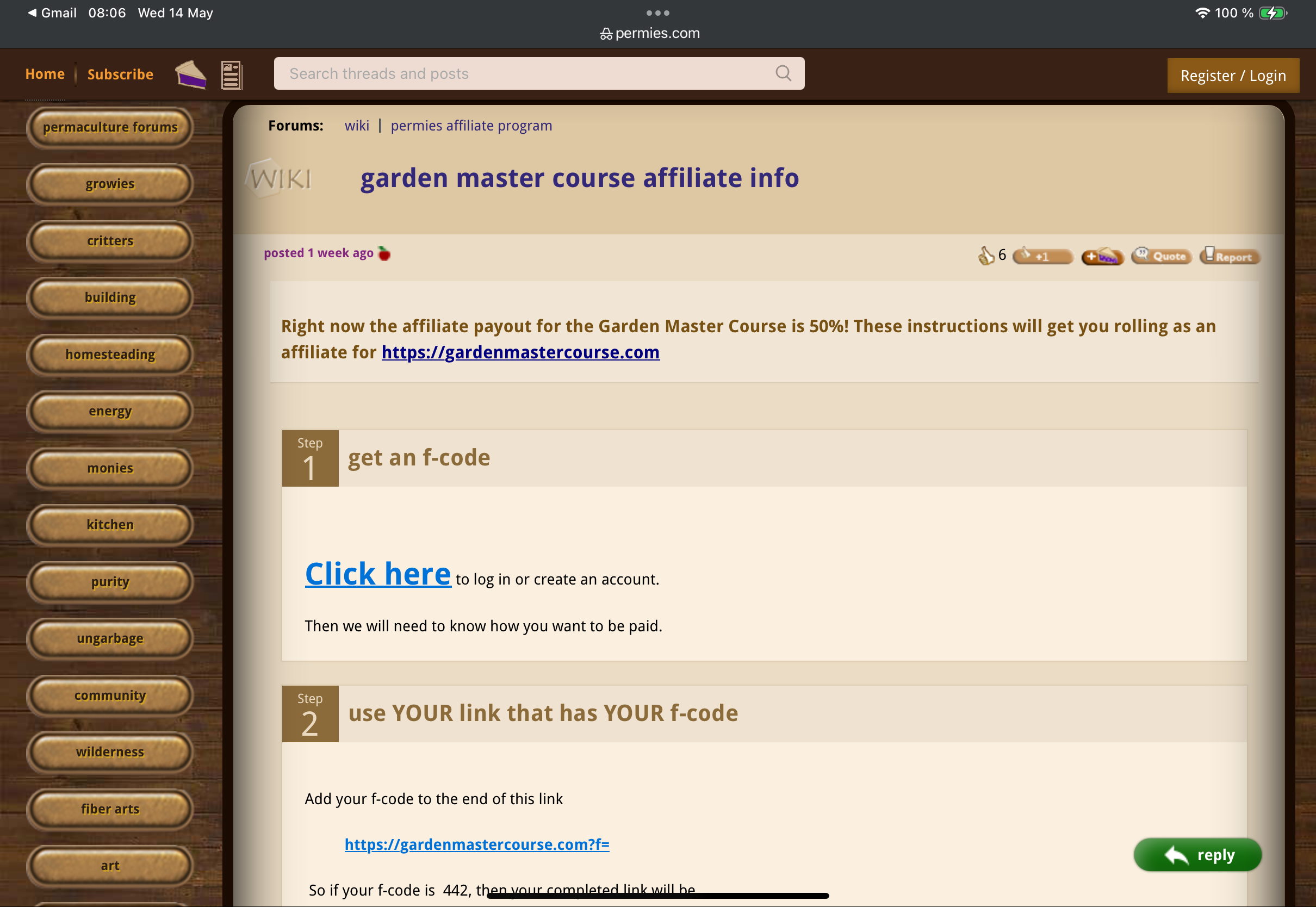 When not logged in, go to https://permies.com/wiki/279979/garden-master-affiliate-info