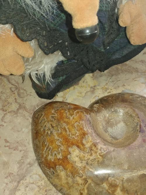 "Well he appears to be an ammonite, like the sort that would have lived in that fossil that arrived a few days ago. Only they went extinct 66 million years ago so it can't be."
